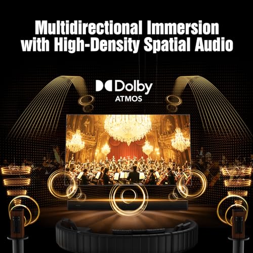 5.3.4 Dolby Atmos for a 360° Spatial Soundfield: Two wireless rears and four up-firing drivers create a dense 5.3.4 Dolby Atmos field where sound moves naturally above, behind, and around you. Voices stay centered and clear, effects feel lifelike, and everyday content becomes more cinematic and immersive. (Not compatible with DTS.)