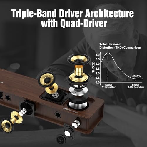 Flagship 5.3.4 Home Theater Soundbar — A New Class of Acoustic Architecture: HiCore A534 isn’t just a soundbar — it’s built on a new acoustic architecture. Its Triple-Band Driver Architecture and BassCoupling Technology unlock the full performance of 15 Hi-Fi aluminum-magnesium drivers, delivering up to 800W of cinematic power. 5.3.4 isn’t “more channels” — it creates a higher-level Dolby Atmos soundstage with deeper immersion and precision.
