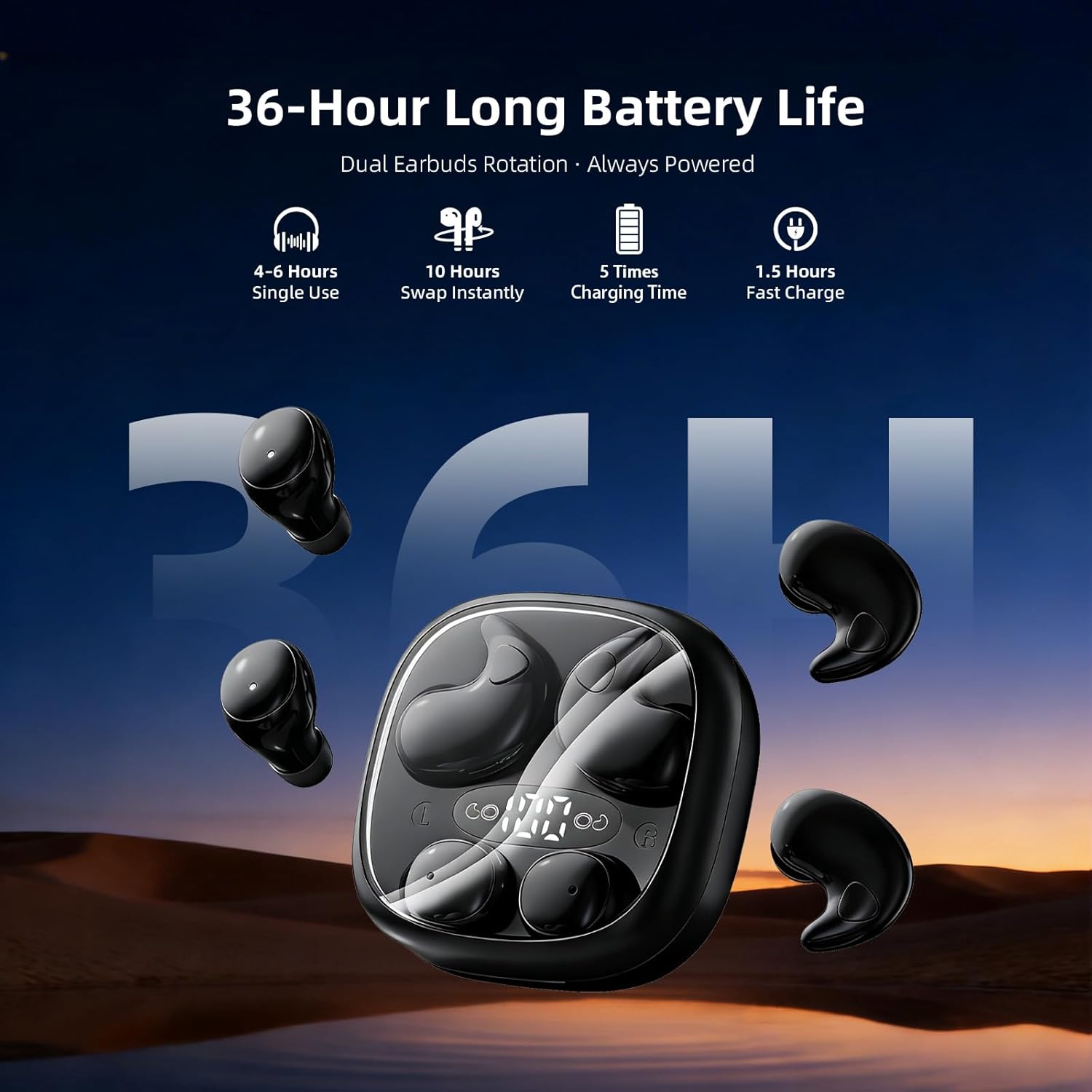 【Non-In-Ear Pressure-Free Design】Resting outside the ear canal, these wireless earbuds are soft, breathable, and non-intrusive. Enjoy long-term comfort without the discomfort of traditional in-ear headphones. Perfect for overnight use and side sleeping
