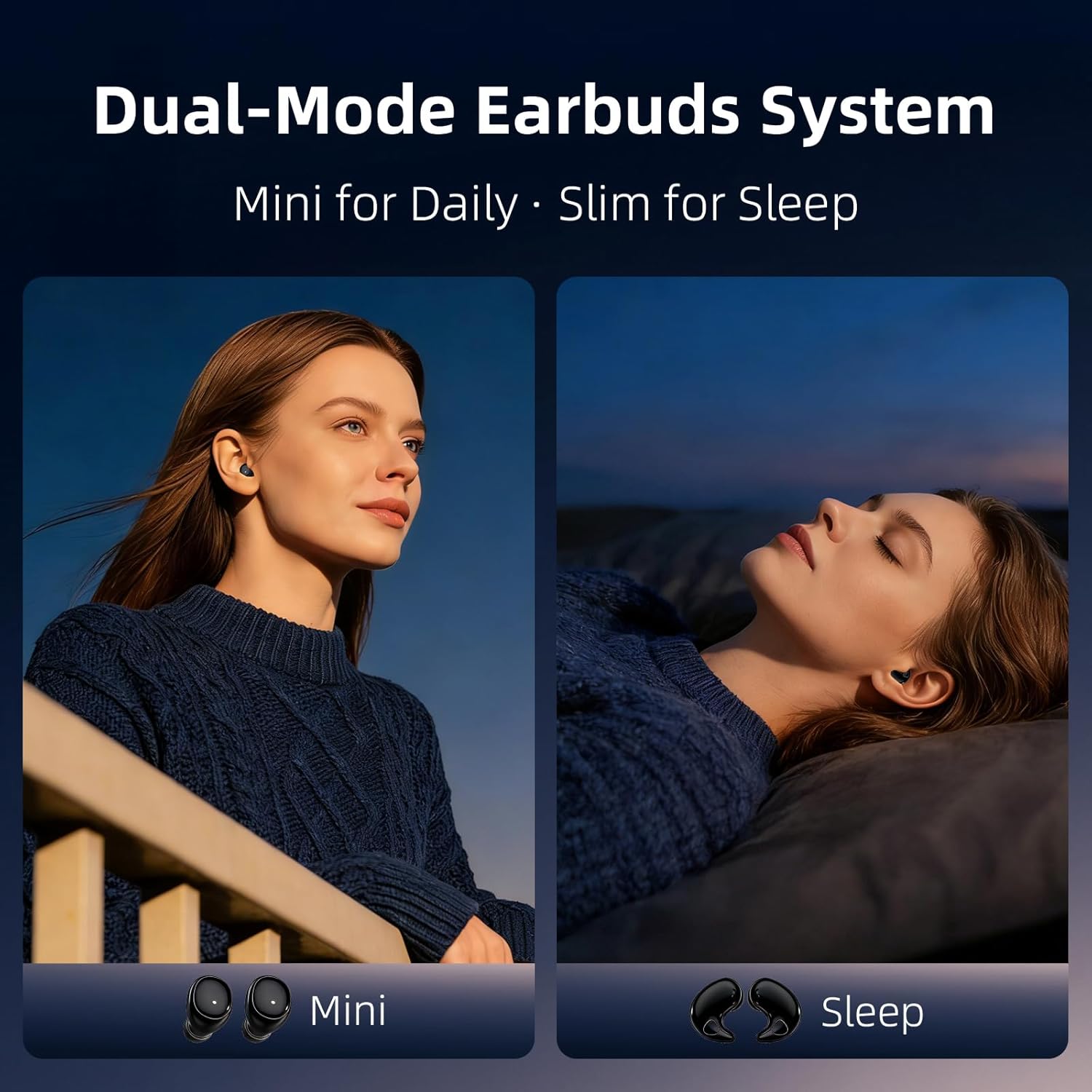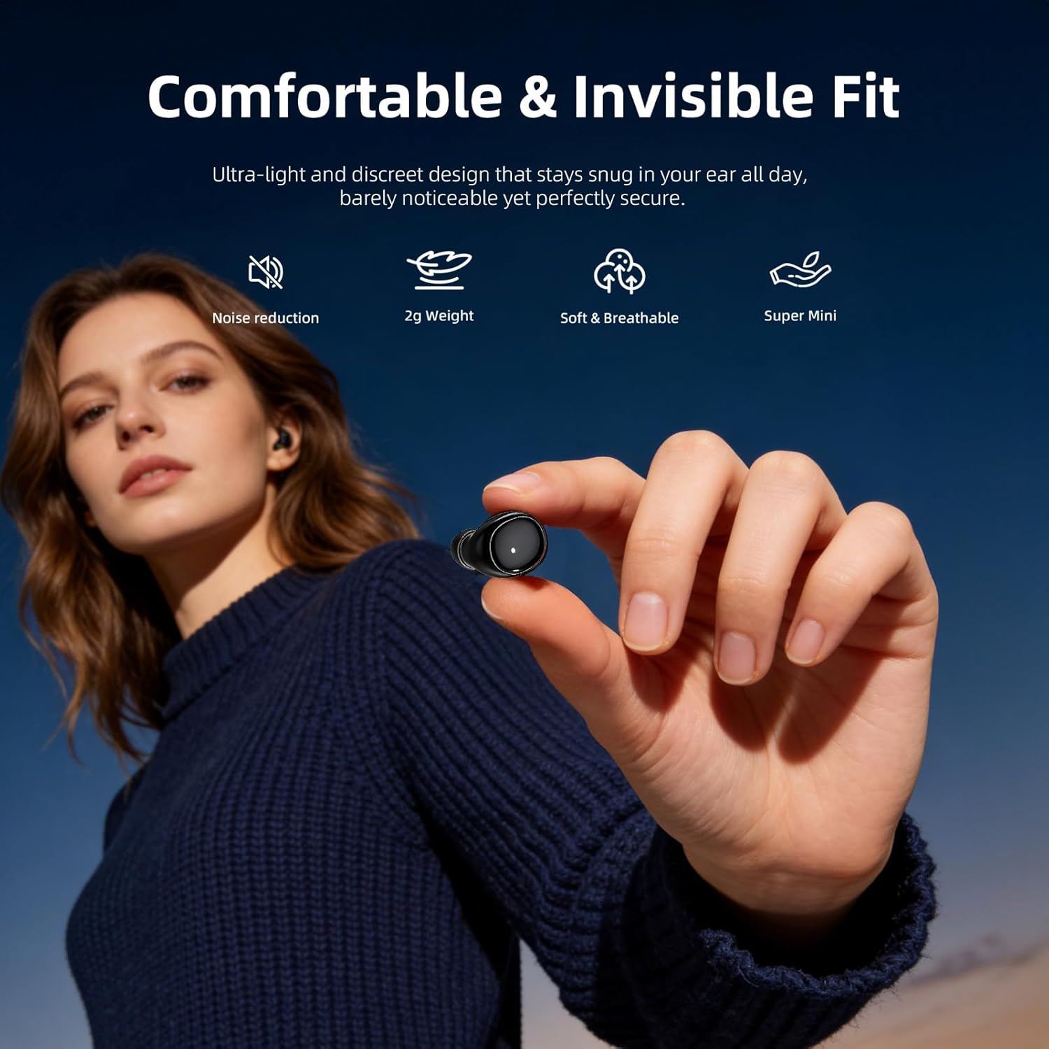 【Mini & Invisible Bluetooth Earbuds】Tiny, discreet wireless sleep earbuds fit snugly in small ear canals. Ideal for women, teens, and small-ear users, making them invisible while wearing and perfect for daytime and nighttime use