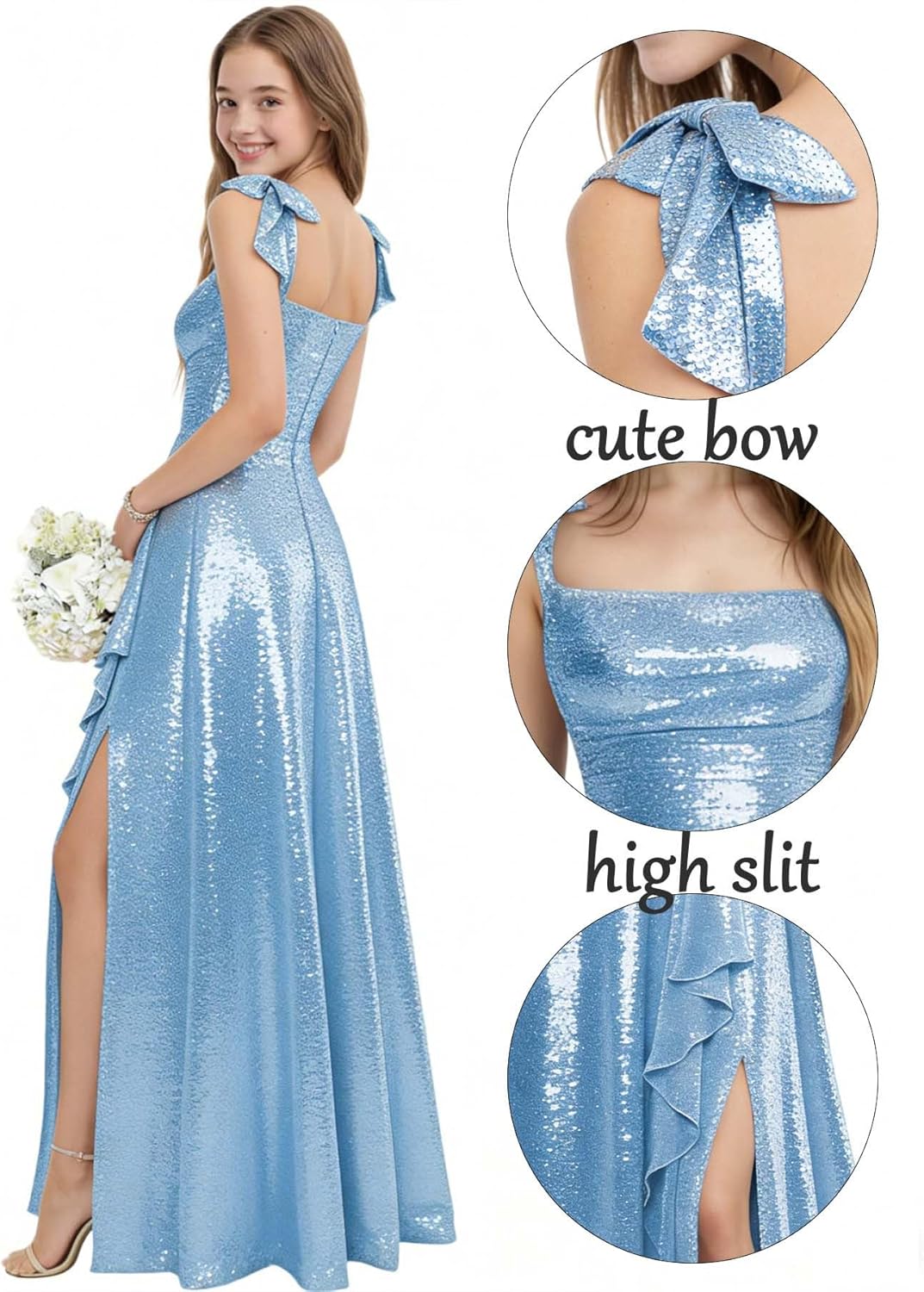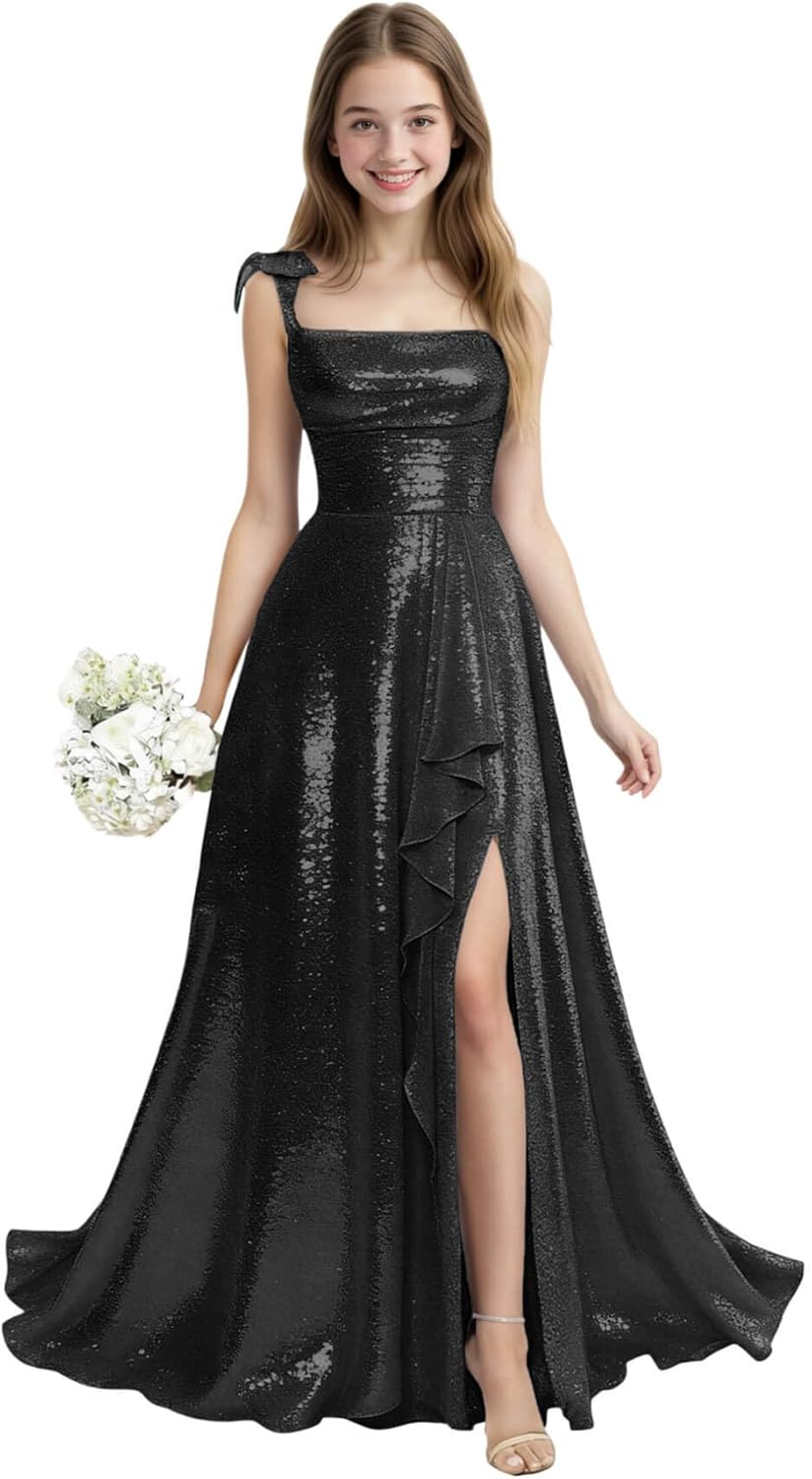 Flower Girl Dress for Wedding High Slit Sequin Girls Dresses Junior Bridesmaid Dress Bow Girls Holiday Party Dresses