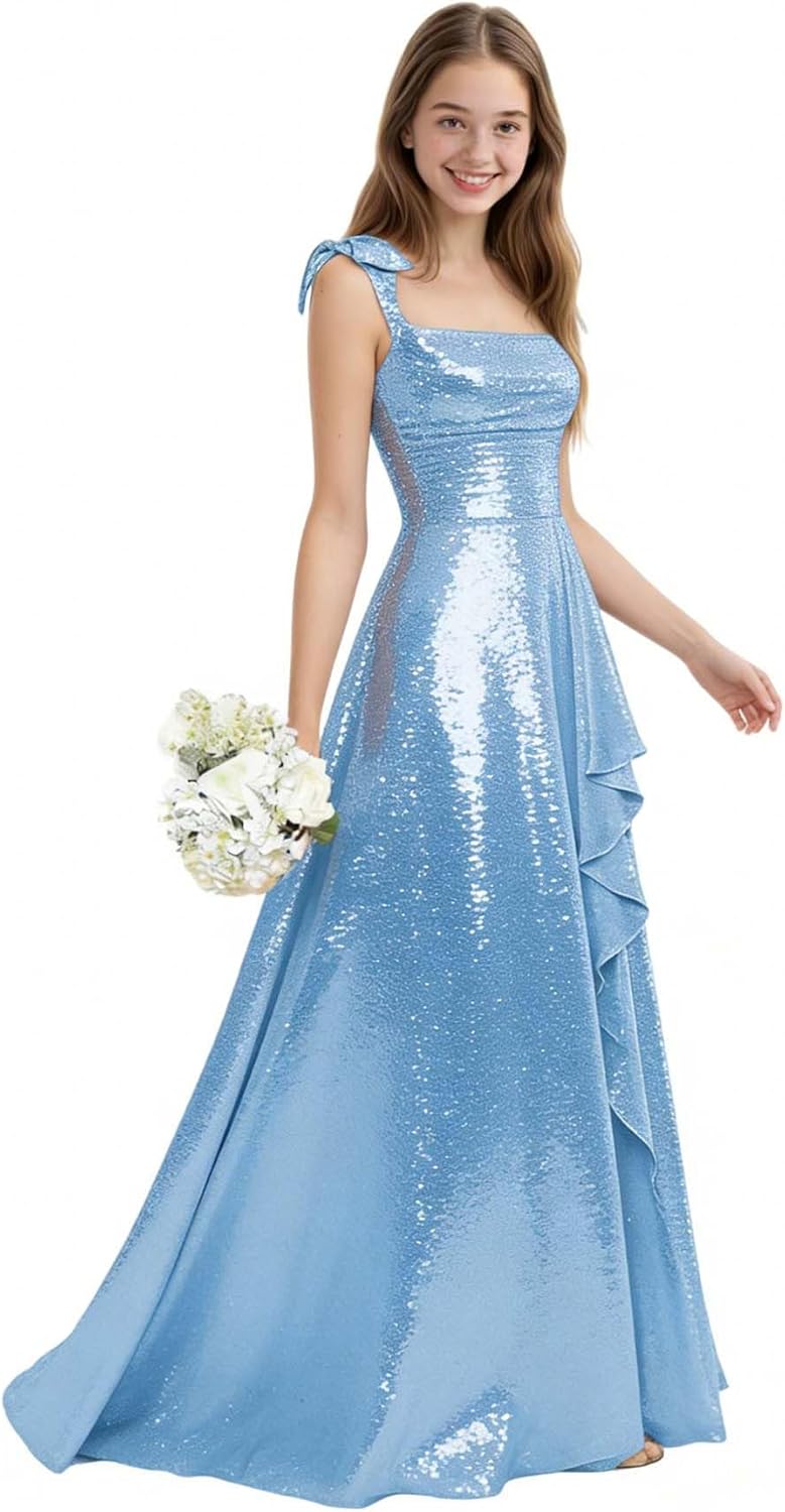 EMOZOM Sequin Junior Bridesmaid Dresses for Kids Flower Girl Dress for Wedding