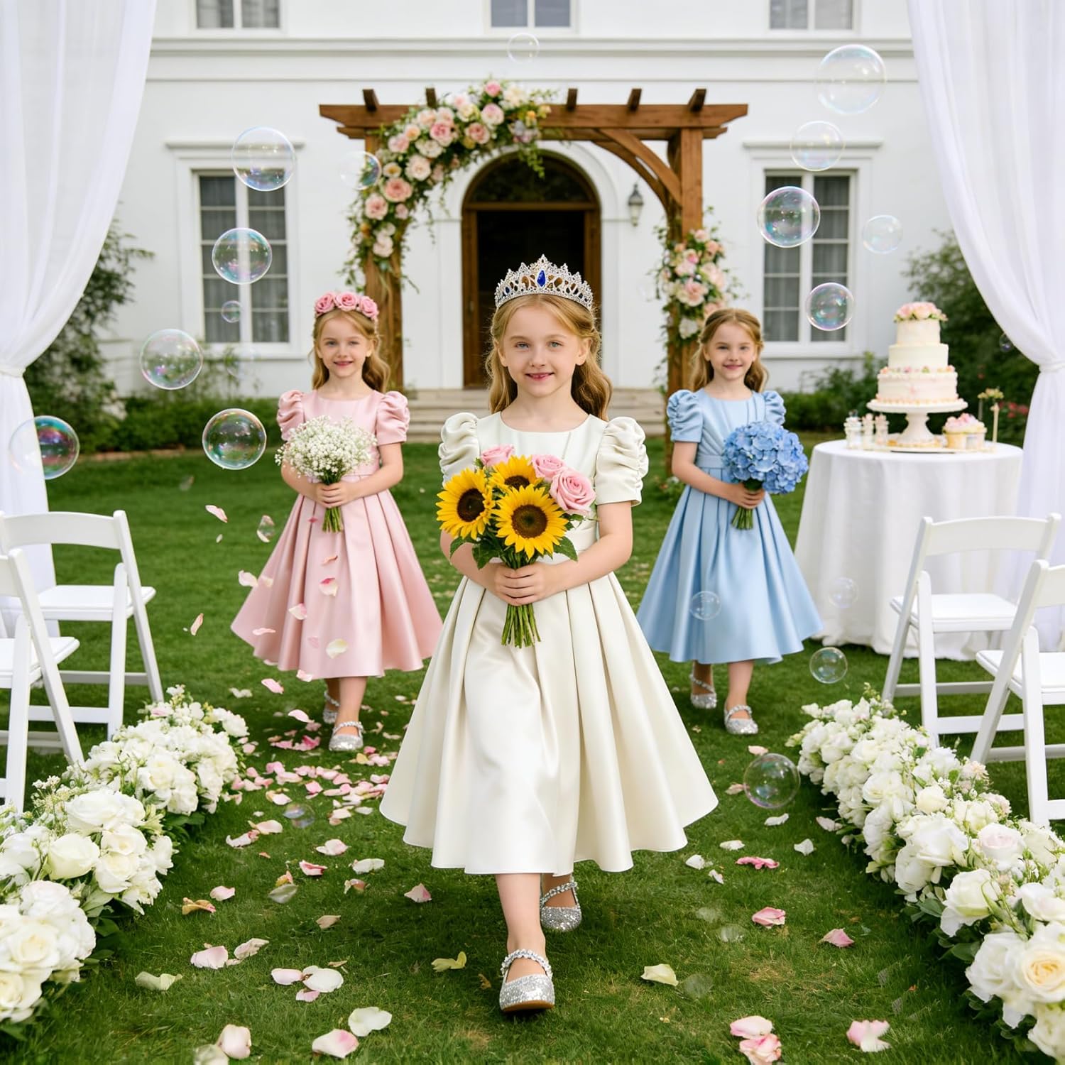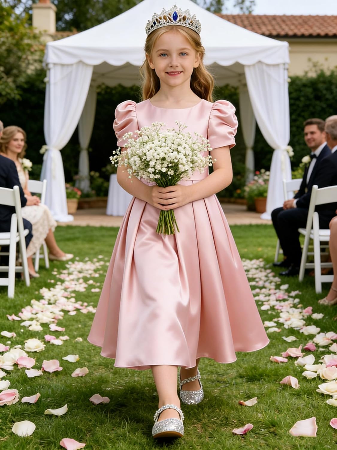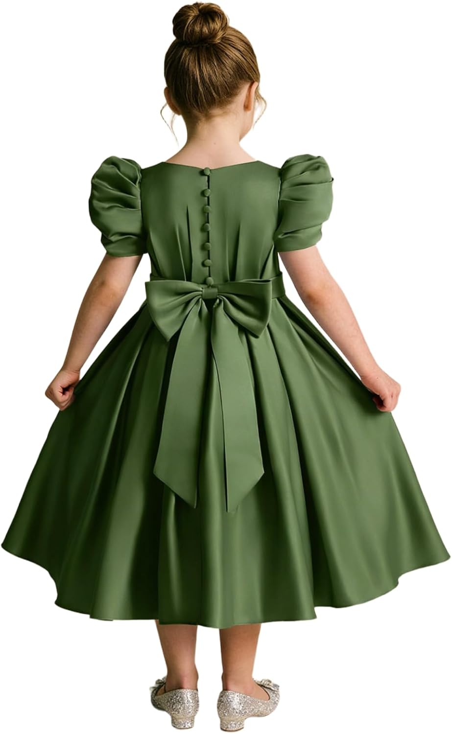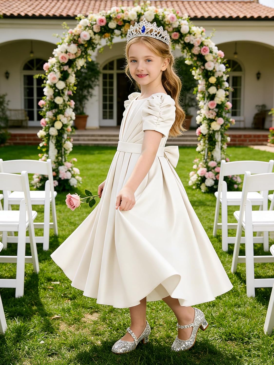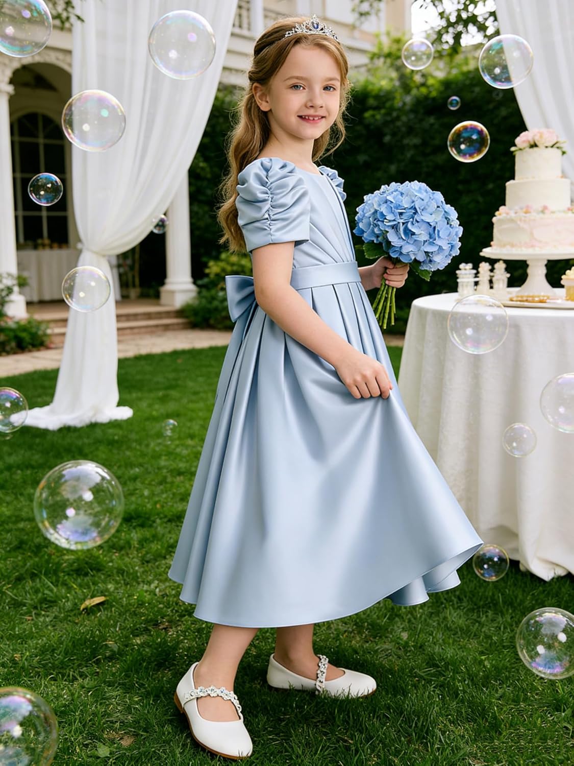 Flower Girl Dresses Wedding Satin Bow Little Girls Short Sleeve Toddler Bridesmaid Dress Communion Formal Gowns