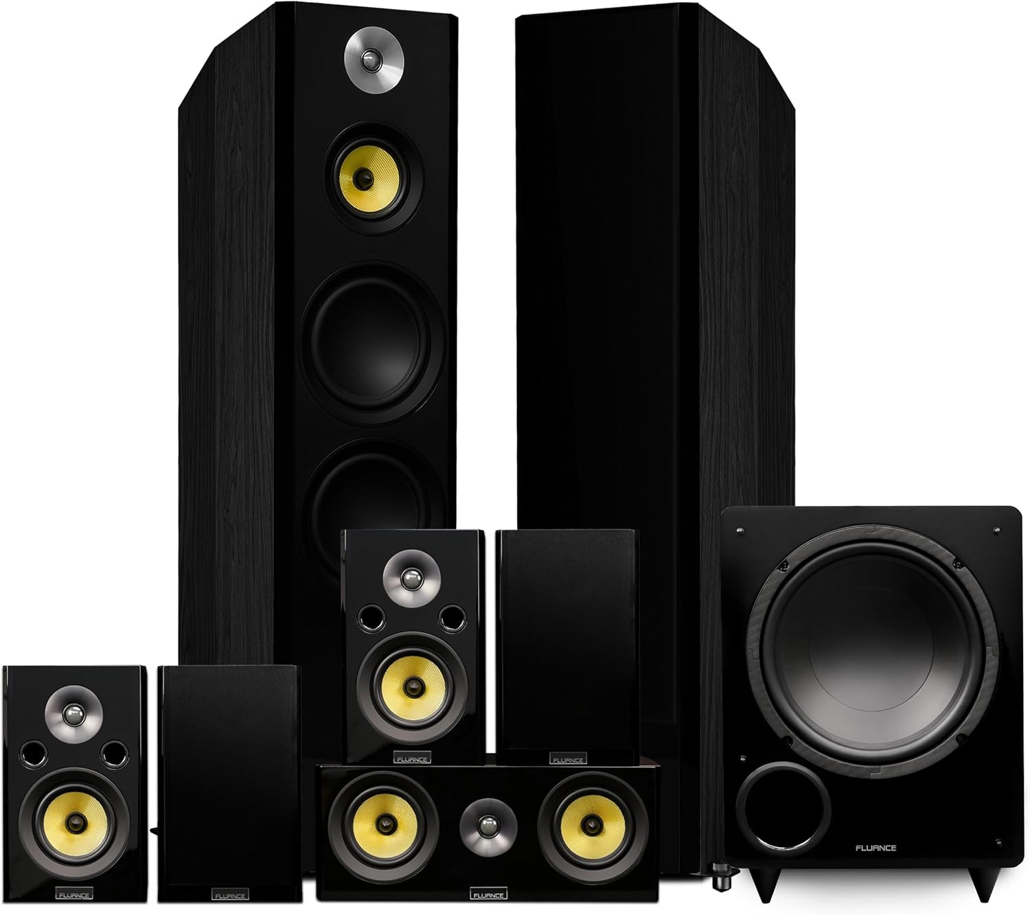 Fluance Signature HiFi Surround Sound Home Theater 7.1 Channel Speaker System including 3-Way Floorstanding Towers, Center Channel, Surrounds and Rear Surrounds and DB10 Subwoofer – Black Ash (HF71BR)
