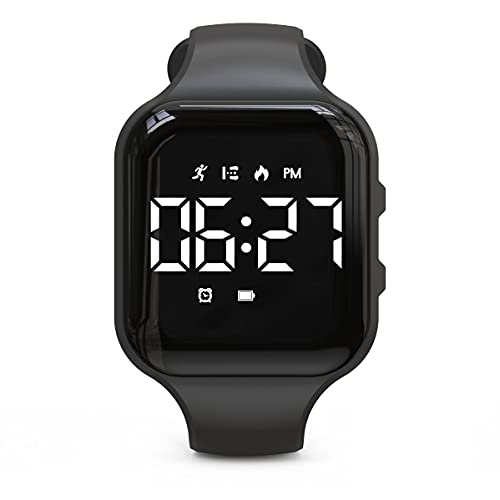 Focwony Non-Bluetooth Led Fitness Tracker Watch,Digital Pedometer Watch,with Step Counting/Distance/Calories/Stopwatch/Alarm Clock, Great Gift for Kids Teens Girls Boys Xmas (Square – Black)