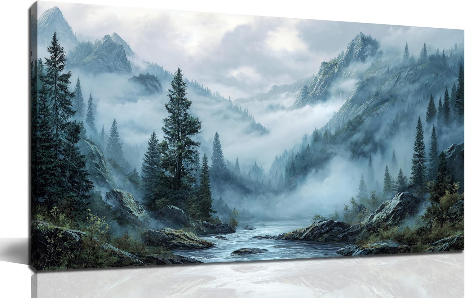 Specification: Foggy Forest Wall Art for Living Room Tree Canvas Wall Art for Office Mountain Pictures Wall Decor for Bedroom Size 20 x 40 Inch
