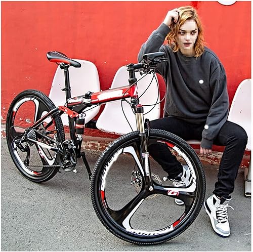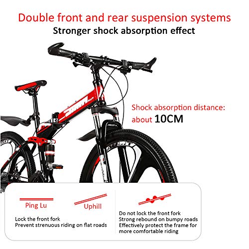 Folding Adult Bicycle, 26 Inch Variable Speed Mountain Bike, Double Shock Absorber for Men and Women, Dual Disc Brakes,