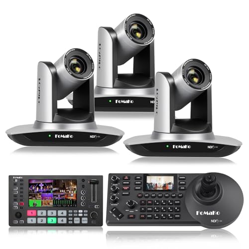 FoMaKo 20x Optical Zoom NDI Camera, AI Auto Tracking HDMI PTZ Camera(2PCS), M3 Video Mixer Switcher+KC608 Pro PTZ Controller, for Church Services Worship Education,PTZ Bundle(FMK20UH+M3+KC608 Pro)