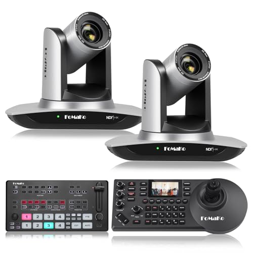 FoMaKo 20x Optical Zoom NDI Camera, AI Auto Tracking HDMI PTZ Camera(2pcs),KC608 PTZ Controller, M1 Video Mixer Switcher,for Church Services Worship Education(FMK20UH X2+KC608+M1)