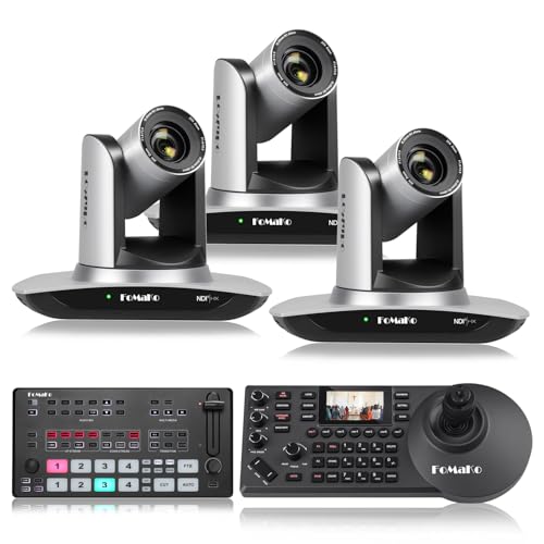 FoMaKo 20x Optical Zoom NDI Camera, AI Auto Tracking HDMI PTZ Camera(3pcs),KC608 PTZ Controller, M1 Video Mixer Switcher,for Church Services Worship Education(FMK20UH NDI X3+KC608 Pro+M1)