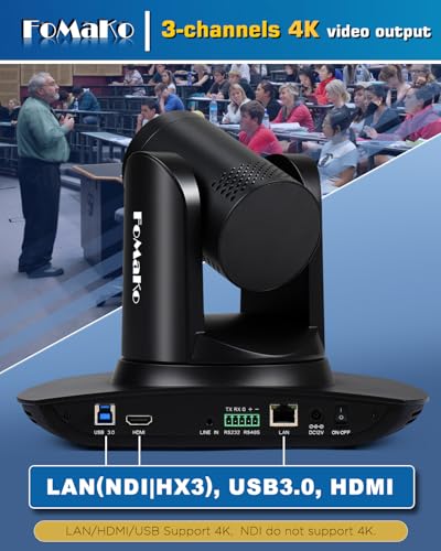 FoMaKo 4K 20X PTZ Camera HDMI with NDI and AI Auto-Tracking PTZ Camera,for Church Worship Education Conference Events,NDI 6 & NDI HX3 Certified(K20UHx3+KC608 Pro) BK20UH3