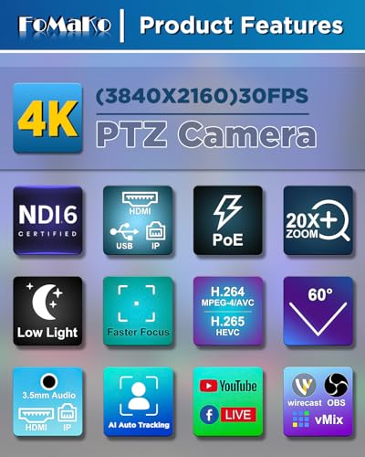 【 POE supported 】. very easy to use, just one cable to connect to your LAN. Compatible with FoMaKo Video Mixer Switcher and FoMaKo PTZ Camera. Power over Ethernet (PoE) simplifies setup. just one cable for both power and data. Compatible with vMix, OBS, YouTube, Facebook Live, and more.