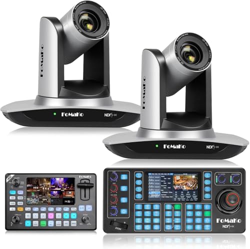 FoMaKo NDI 20x Optical Zoom Camera, AI Auto Tracking HDMI PTZ Camera(2pcs),KC602 Video Switcher,KC608 PTZ Controller, for Church Services Worship Education(FMK20UHX2+KC602+KC608N)