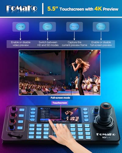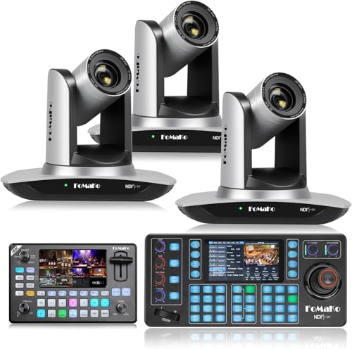 FoMaKo NDI 20x Optical Zoom Camera, AI Auto Tracking HDMI PTZ Camera(3pcs),KC602 Video Switcher,KC608 PTZ Controller, for Church Services Worship Education(FMK20UHX3+KC602+KC608N)