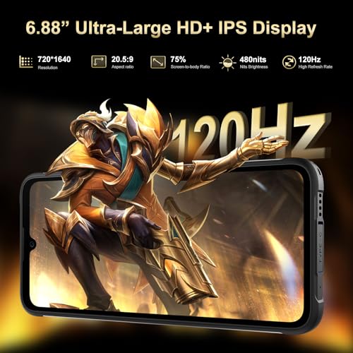 6.88\’\’ HD+ Large Display + 120Hz Refresh Rate: FOSSIBOT F112 Pro 5G cell phone features a 6.88\” HD+ ultral display with 720*1640 resolution that offers better pixels and finer picture quality. This rugged android cellphone provides you with a wonderful and comfortable visual experience and a sensitive screen touch. 120Hz smart dynamic refresh rate enhanced the touch response, designed for seamless visuals and fluid responsiveness.