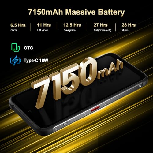 7150mAh Large Capacity Battery + 18W Fast Charging + OTG: This rugged phone comes with a powerful 7150mAh battery that ensures longer usage and meets your daily battery needs for outdoor activities and daily work and play without having to worry about frequent charging. 18W fast charging allows your phone to be fully charged quickly. Enjoy days of usage on a single charge.No more battery anxiety with this android phones. In addition FOSSIBOT F112PRO cell phone supports OTG (cable not included) functionand.