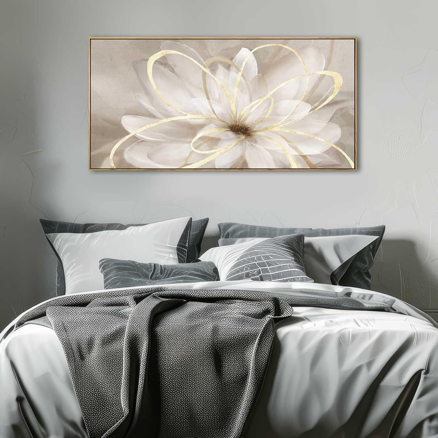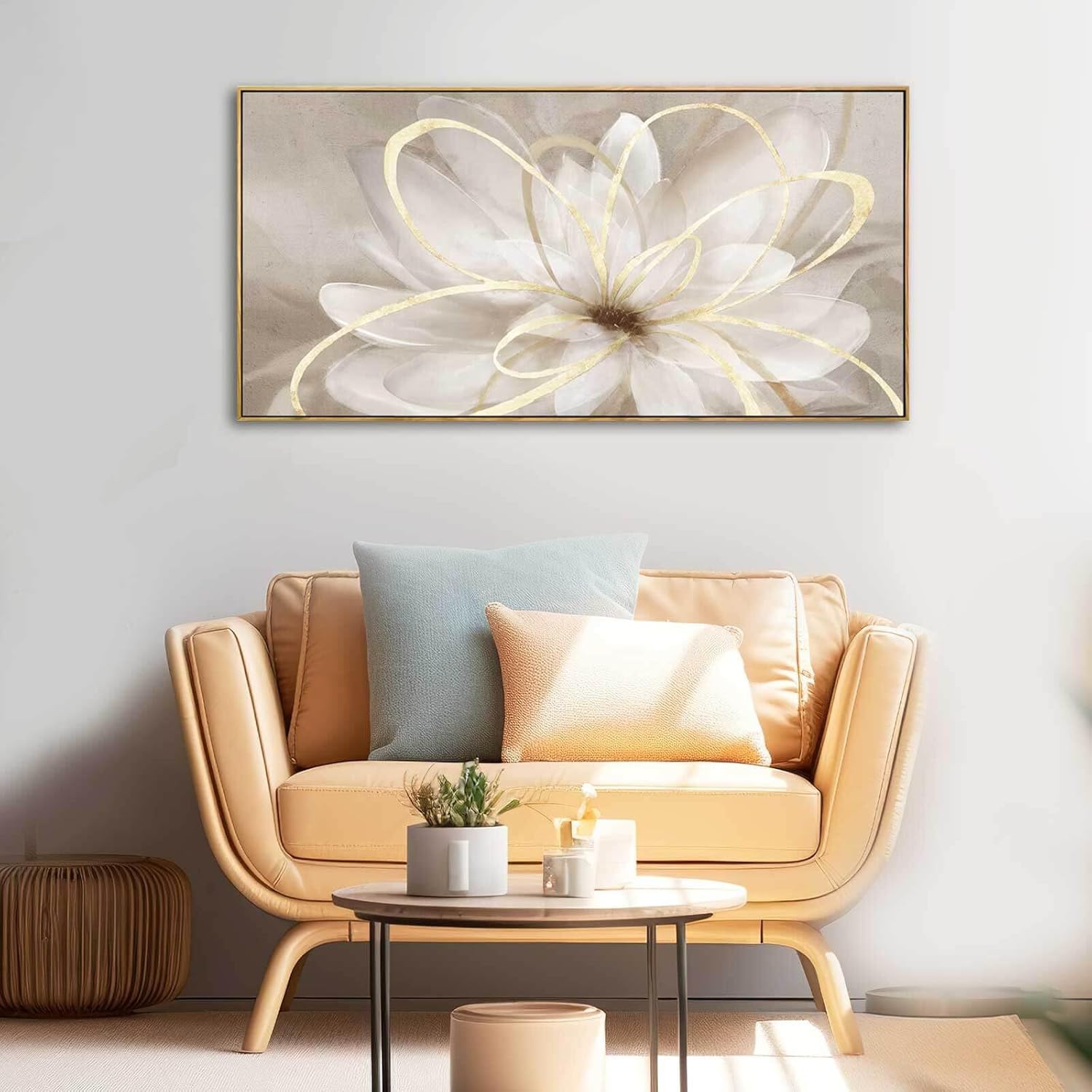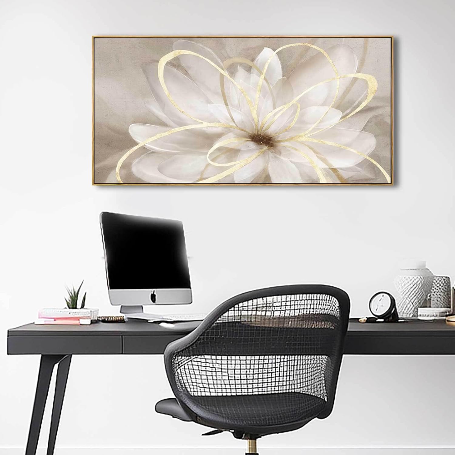 Framed Abstract Wall Art Gold Pictures Wall Decor Line Painting on Canvas 20″x 40″ Contemporary Floral Artwork for Living room Office Bedroom Aesthetic