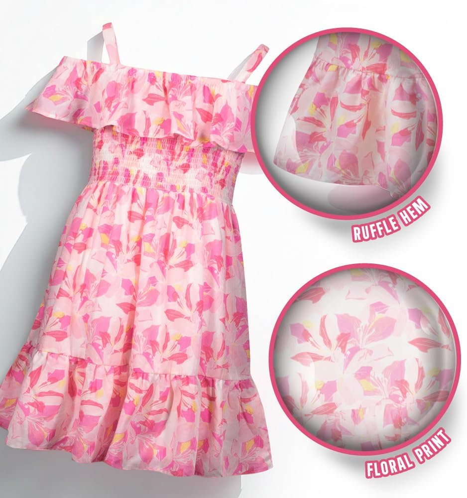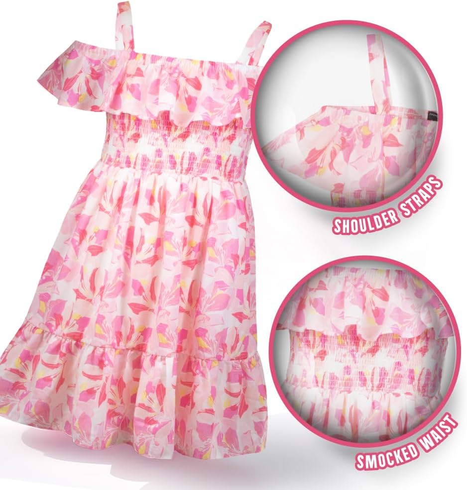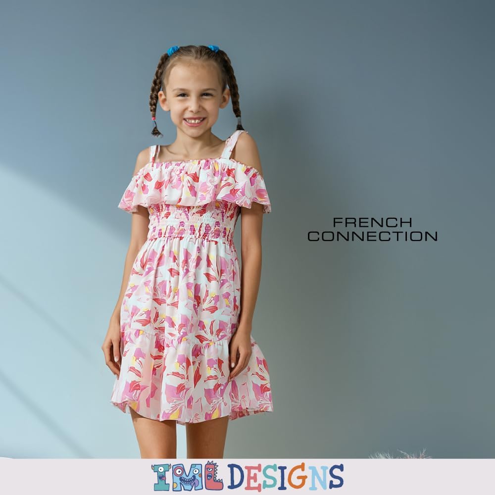 French Connection Girls All Over Print Soft Casual Dress – Flutter Sleeve Ruffle Floral Print Summer Sundress for Kids