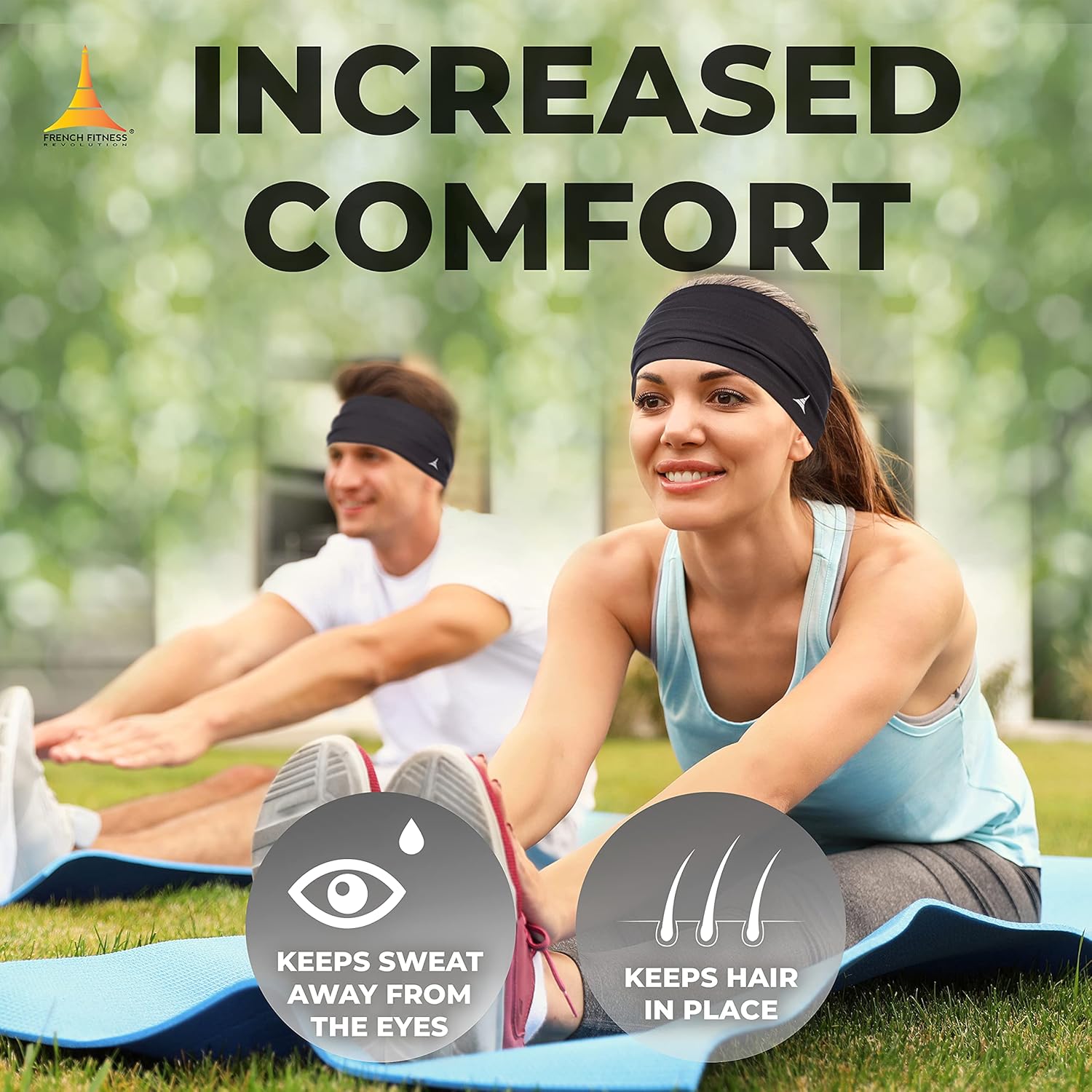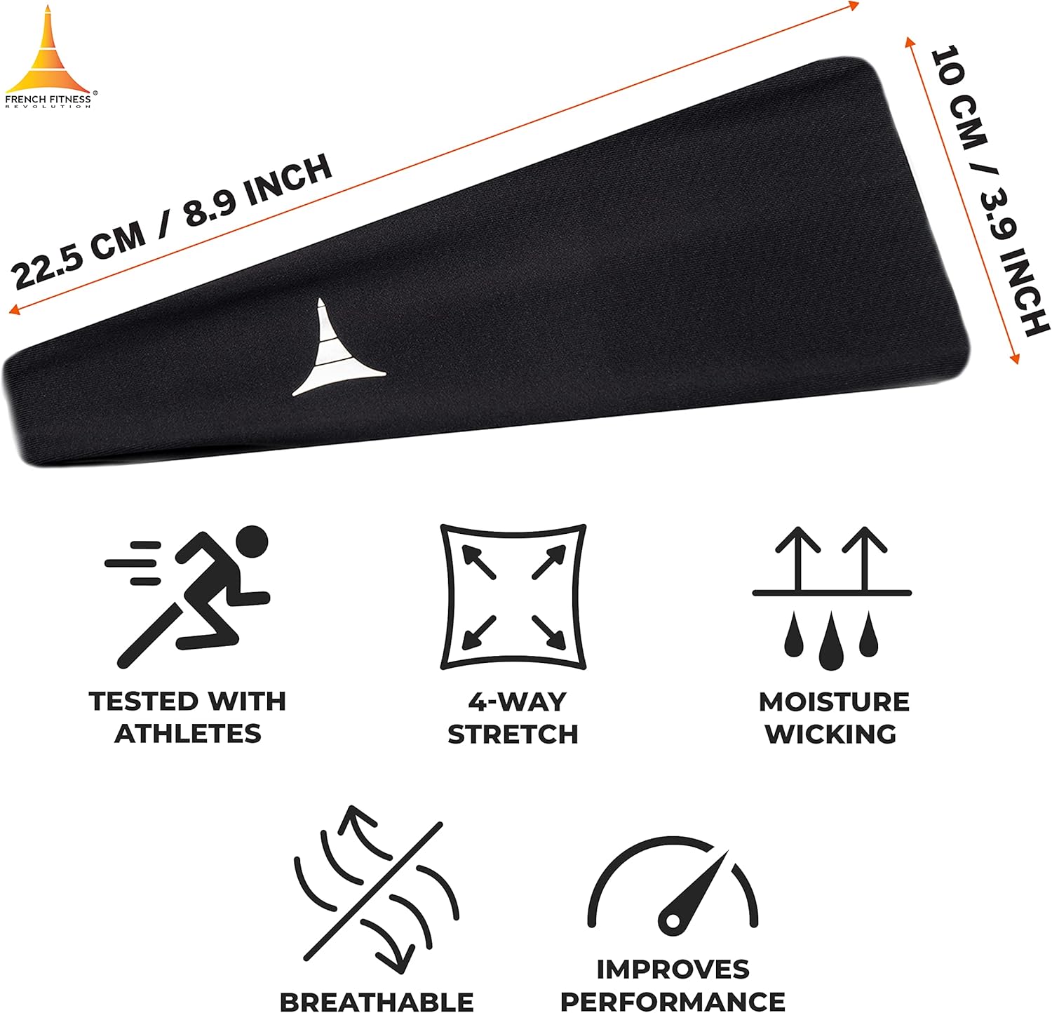 French Fitness Revolution – Stretchy Sports Headband for Men & Women – Guys Sweatband for Running, Cycling, Basketball, Yoga, Fitness – Moisture Wicking Workout Hairband – Made in Europe