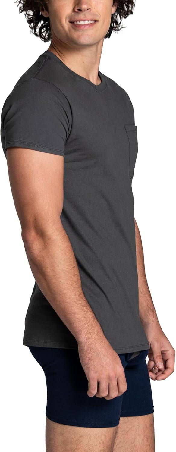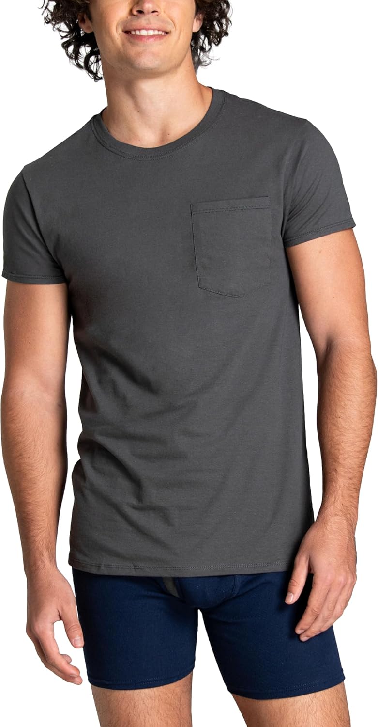 Fruit of The Loom Mens Pocket Tee Undershirts, Moisture Wicking & Tag Free, Short Sleeve Pocket T-Shirts