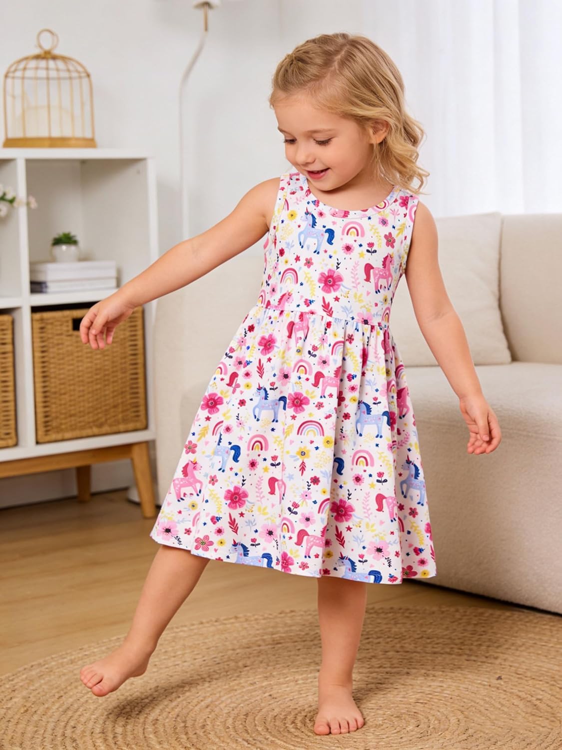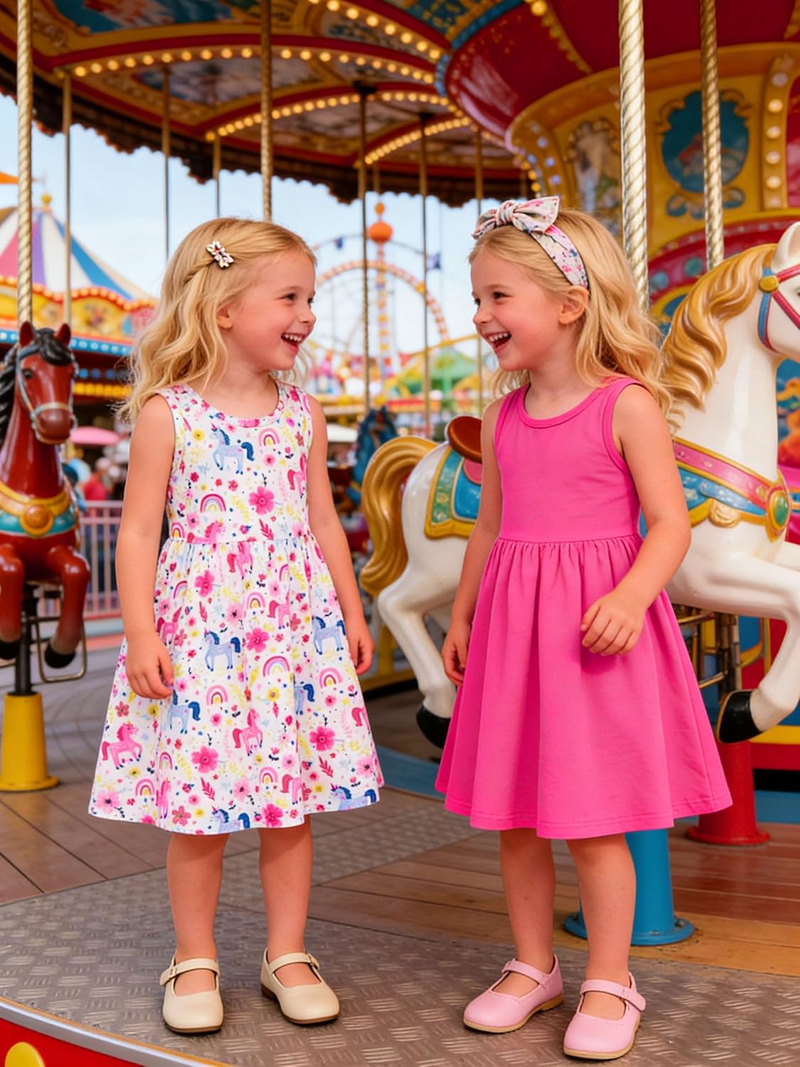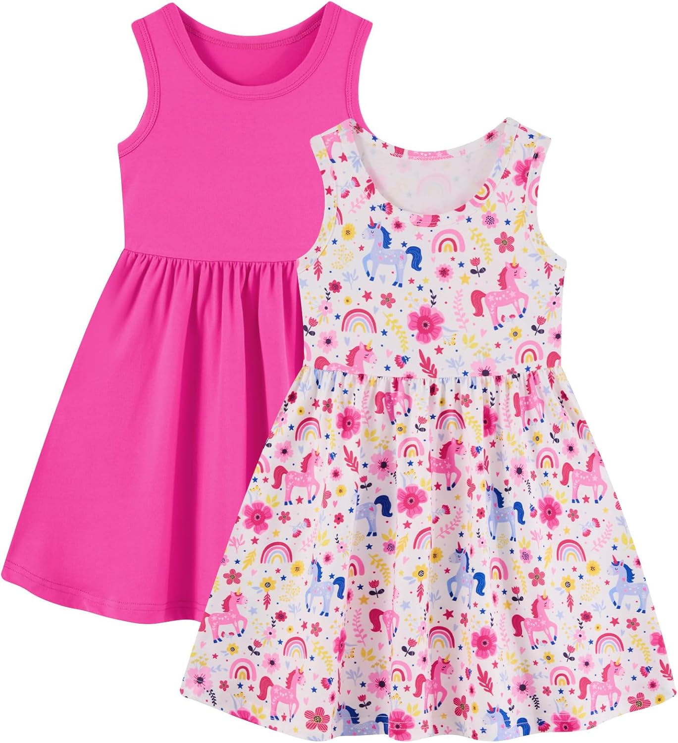 Funnycokid Toddler Girls Dress Sleeveless 2 Pack Kids 2-6 Years