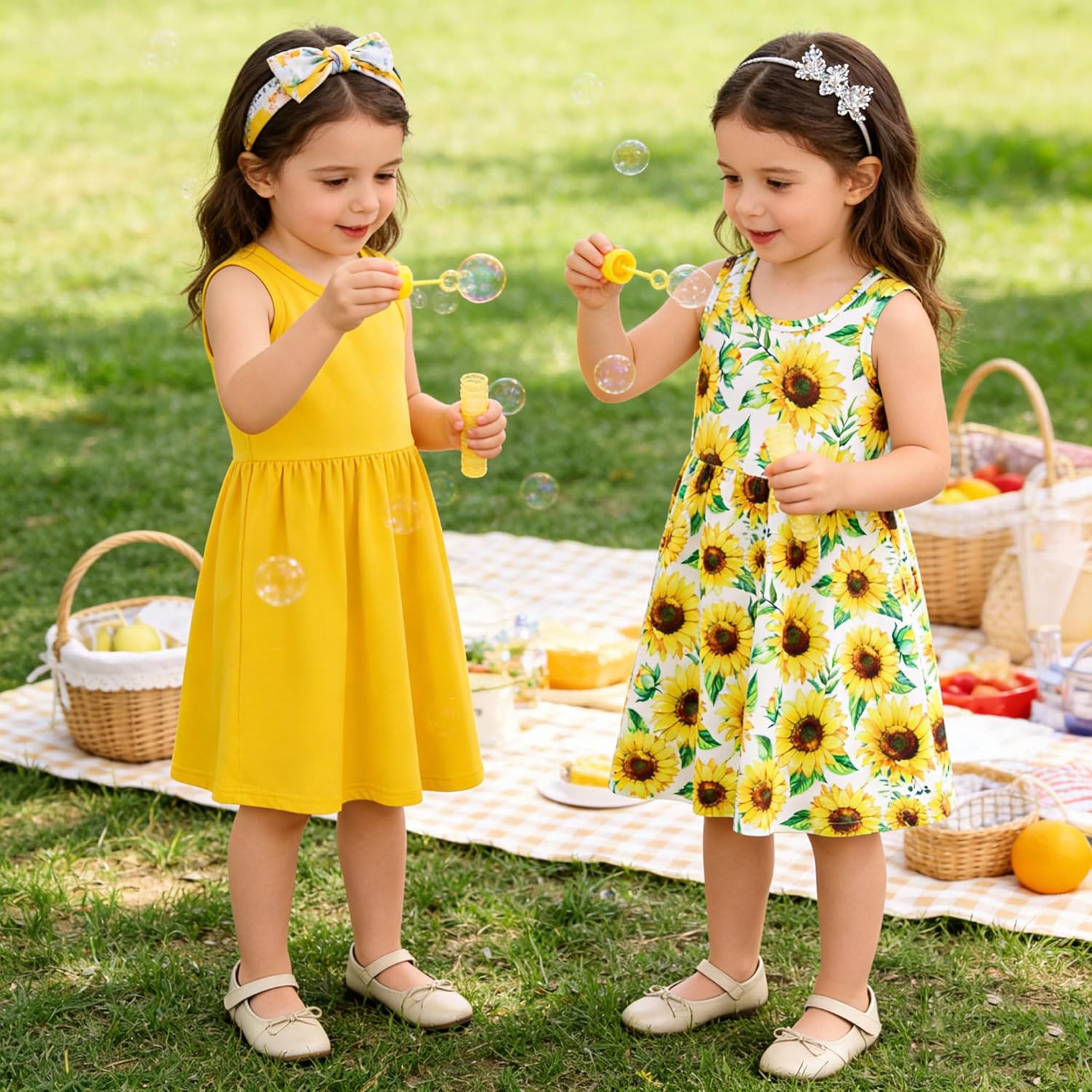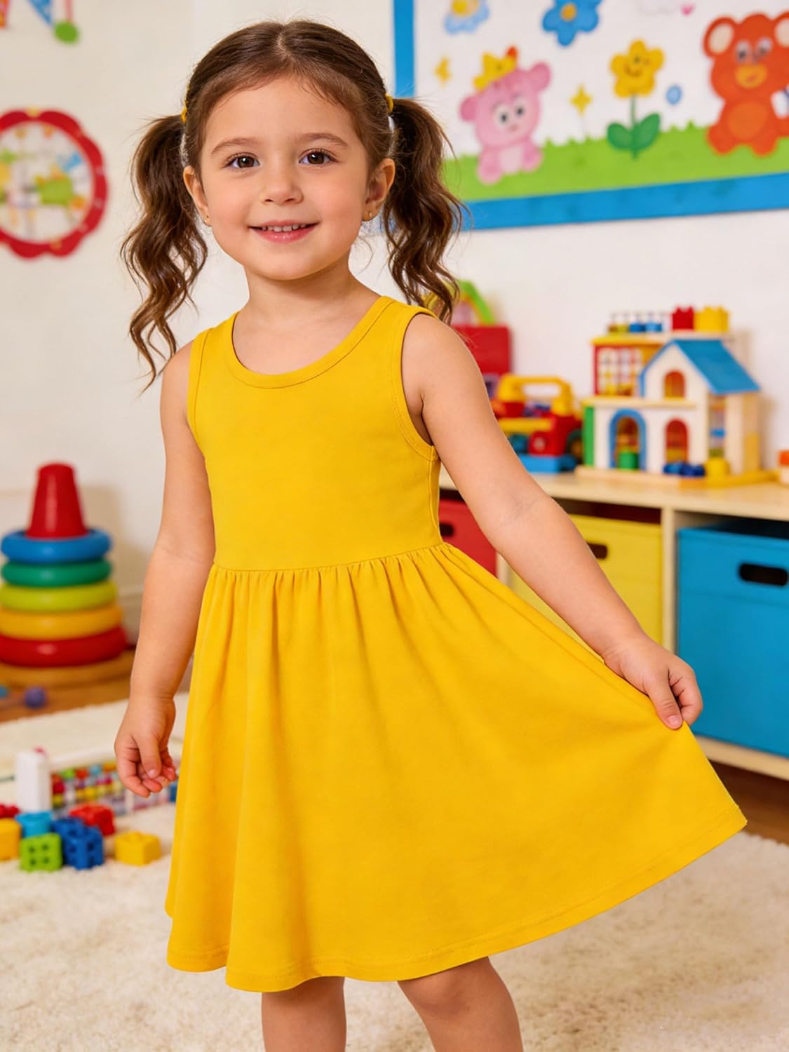 Funnycokid Toddler Girls Dress Sleeveless 2 Pack Kids 2-6 Years
