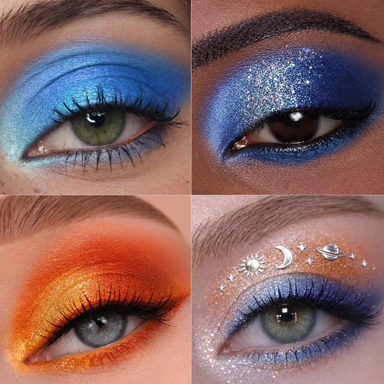 Packed with 48 premium mineral micas, this palette includes metallic, shimmer, and glitter effects to create endless looks — from subtle nude and neutral browns to bold blue, orange, and silver tones. Perfect for eyeshadow makeup, party looks, or festival eye art.