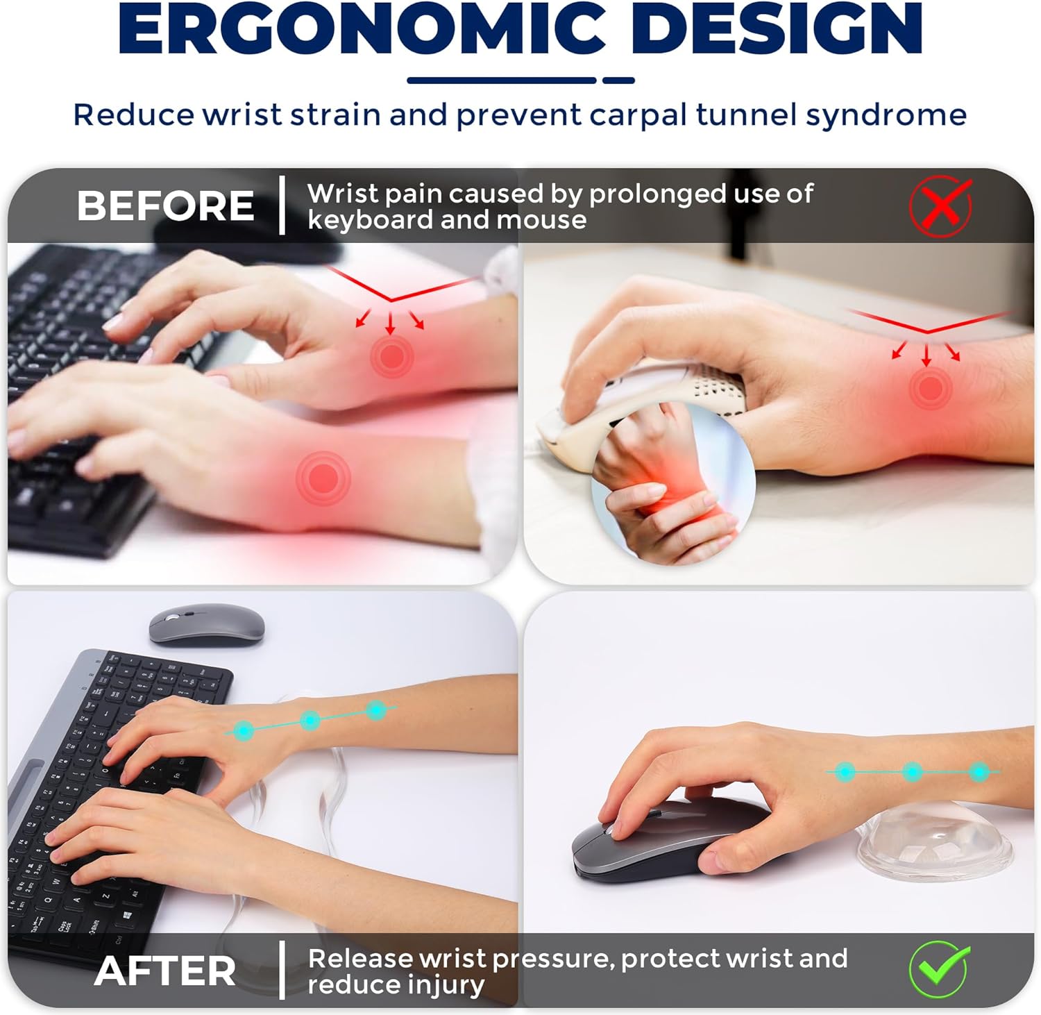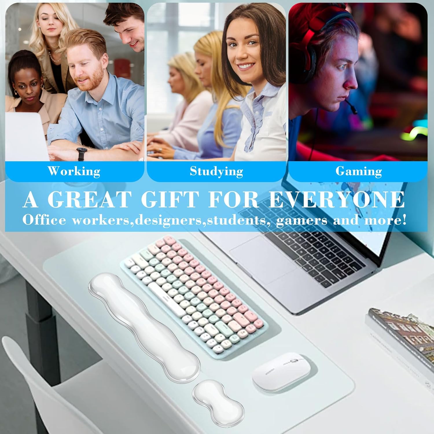 Keyboard & Mouse Wrist Rest Set: No more distractions from Wrist Pain! Enjoy a wrist cushion for keyboard that makes long typing sessions a breeze.