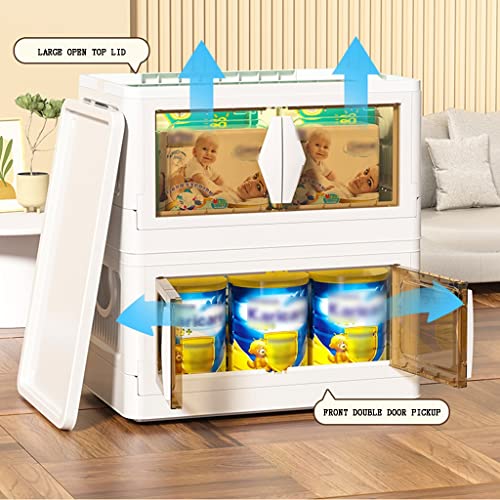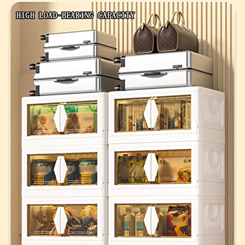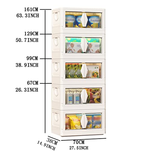 GenSDH Large Folding Storage Containers,Acrylic Bin with Clear Front Window and Top Lid,Storage Box for Organization,Plastic Storage Cart,White,70x38x161cm
