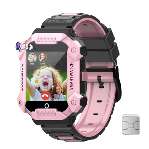 Getfitsoo 4G GPS Smart Watch for Kids with SIM Card, 1.4″ Touch Screen Kids Smartwatch for Boys Girls Gift, Phone Watch with Video Calls/Voice Chat/Camera/Music/Alarm/SOS/Pedometer(T-Pink)