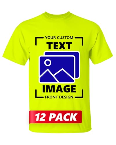 Gildan Custom T-Shirt – Personalized US-Cotton Tee Shirts for Men & Women – Customize Your Own Front and Back Design with Your Image, Logo, Photo, Text – Tshirt in Safety Green, Adult XL, 12 Pack
