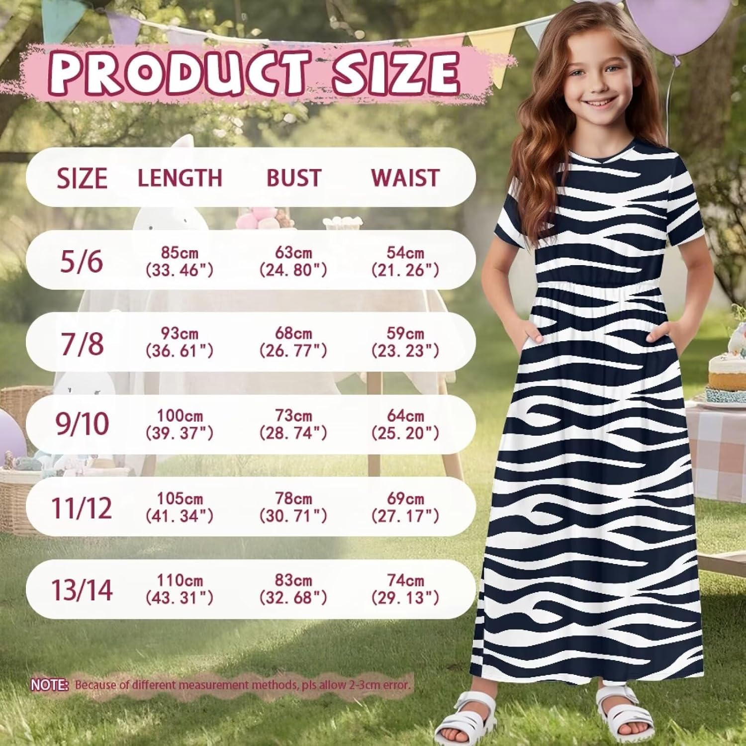 7-8Years – Length: 93/36.61 Waist: 59/23.23 Bust: 68/26.77
