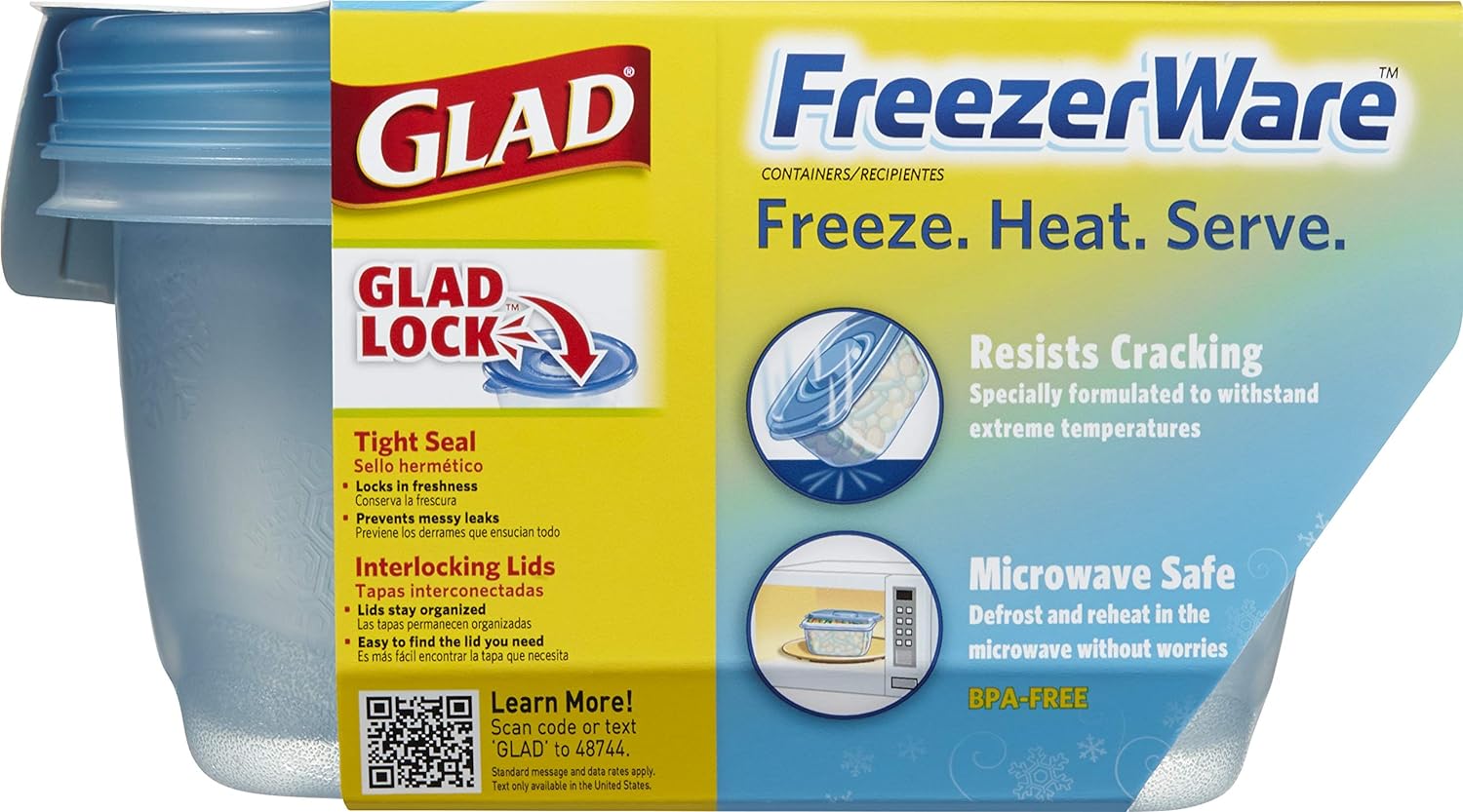 REUSABLE FOOD STORAGE: Glad FreezerWare food containers are BPA free and can safely go from freezer to microwave to dishwasher