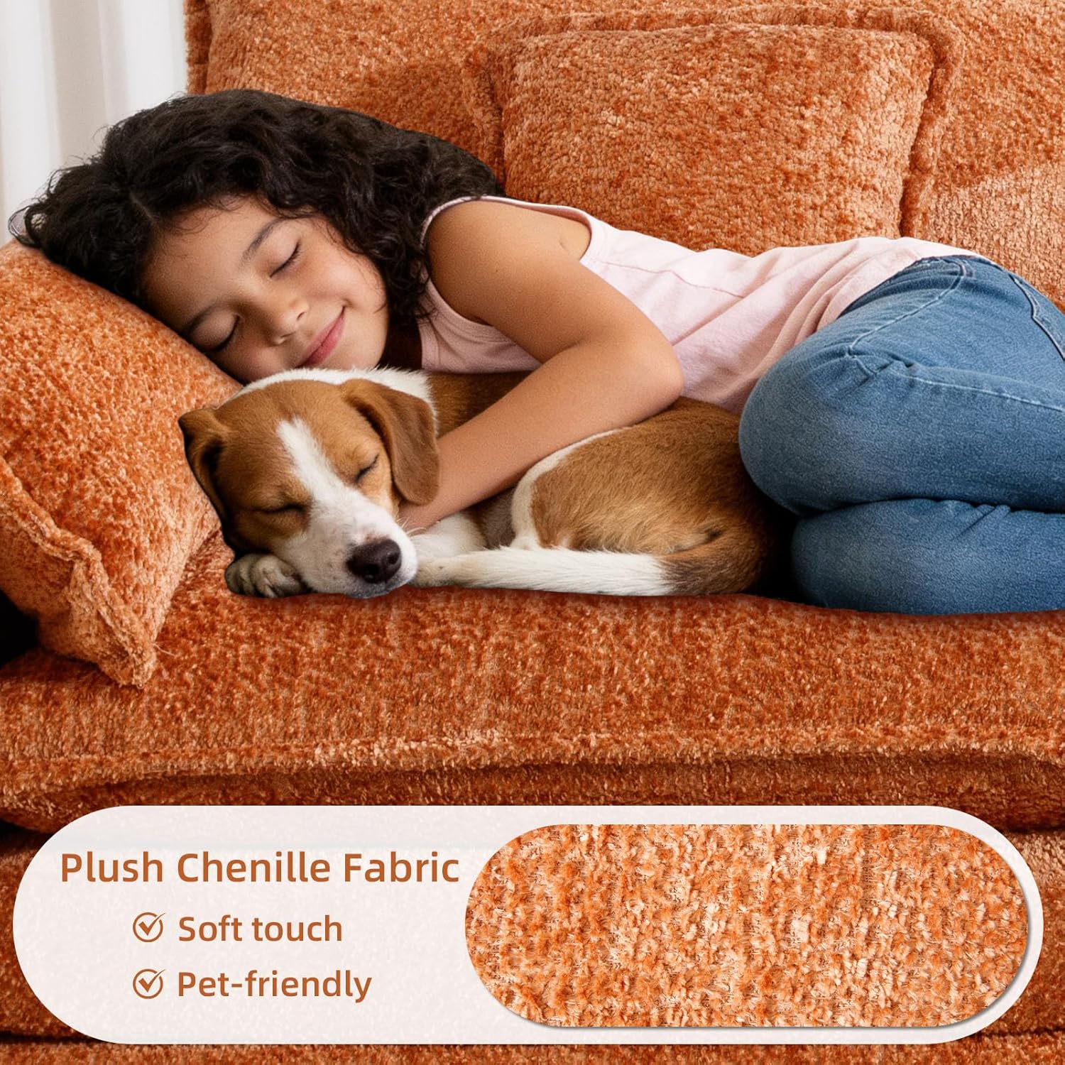 Comfy Chenille Fabric: The chenille fabric is soft and skin-friendly, providing a soft and comfortable touch and adding a sophisticated and luxurious look to the boucle couch.