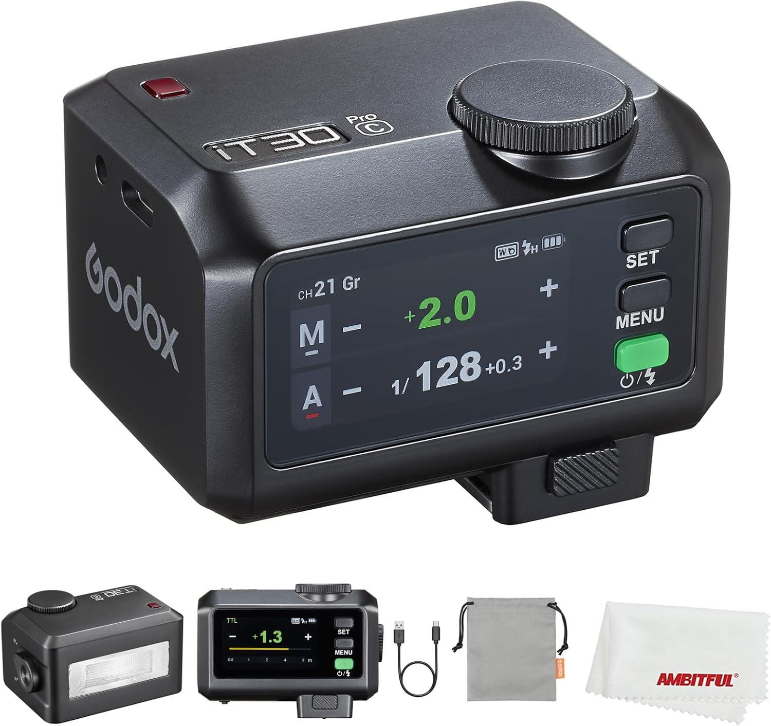 【Travel Light, Shoot Big】: Roughly one quarter the size of a traditional speedlight and weighing only 120g, the iT30Pro slips into any bag-ideal for on-location work.