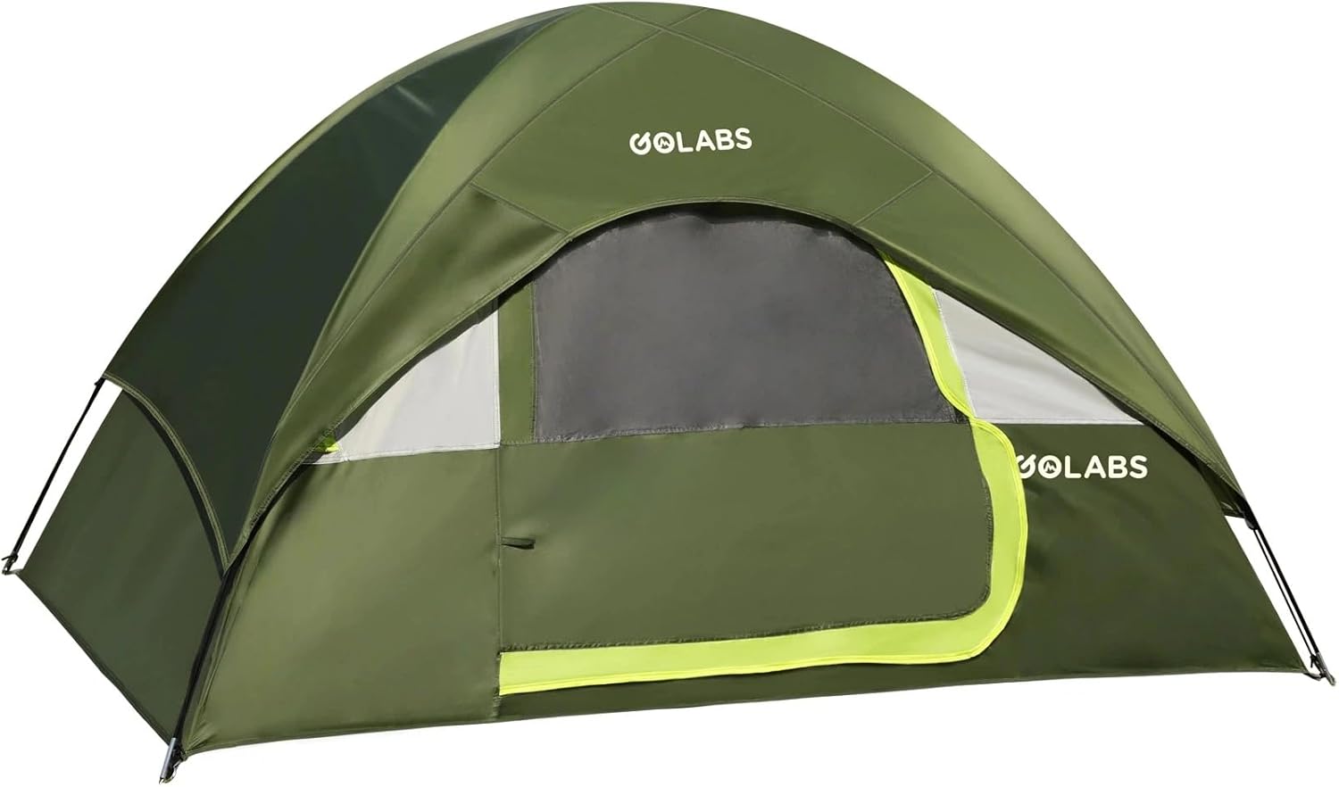Golabs CT1 2 Person Camping Tent, Easy Set Up in 3 Mins, PU1500mm Waterproof w/Mesh Top & Door with Ventilation, Lightweight 4.4lbs Portable Family Tent with Carry Bag &Interior Storage Pockets &Hook