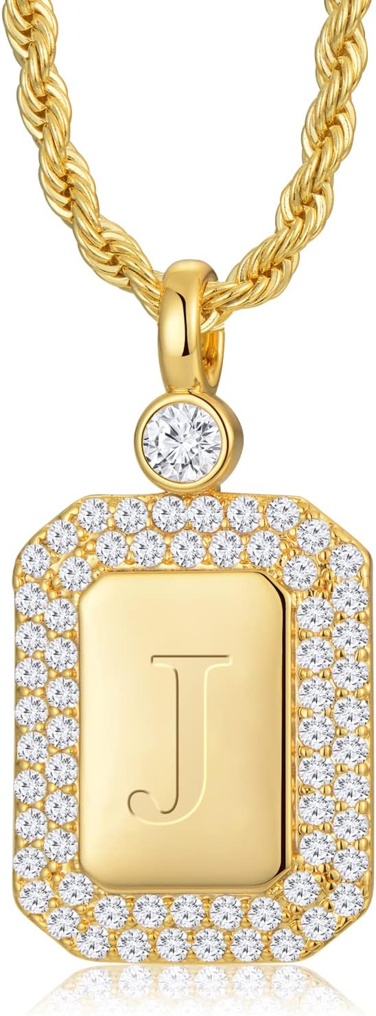 Gold Initial Necklaces for Women, Letter Necklace for Her Birthday Yellow Gold Initial Pendant Necklace with Rope Chain, Women Jewelry Gifts for Her Wife Girlfriend
