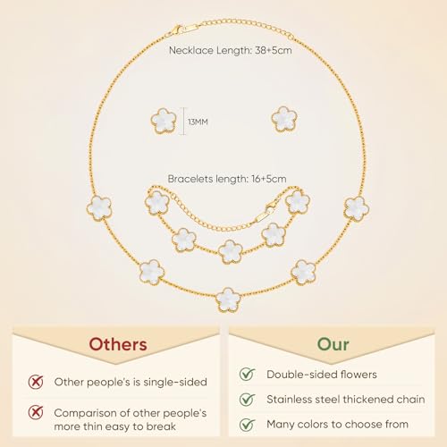 Gold Jewelry Set:The floral jewelry set contains the pendant necklace,charm bracelet,and stud earrings to meet all your jewelry requirements. Designed with lucky flower patterns, representing Love,Health,Reputation,Wealth,and Opportunity. Wish the one who wears this women jewelry set good luck every day.