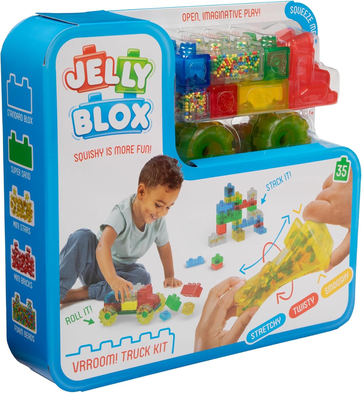 COMPATIBILITY: Jelly Blox Vrroom! Truck Kit includes 35 colorful blocks to construct a rolling truck that will bring your child’s imagination to life, and it’s compatible with all other Jelly Blox Kits for expanded play and creativity