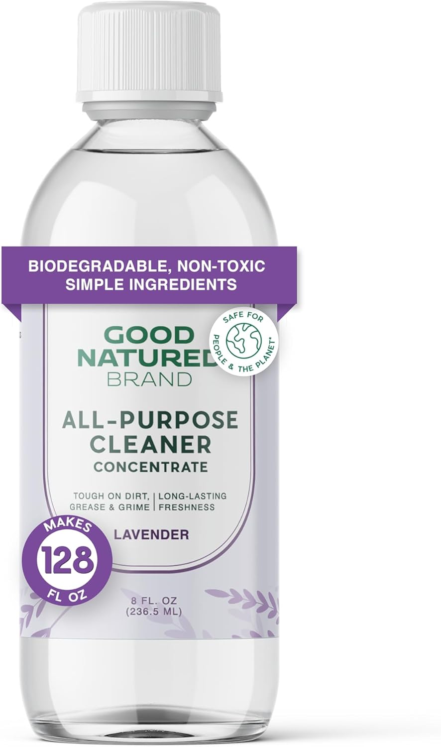 Good Natured Brand All-Purpose Cleaner Concentrate | Multi-Surface Cleaner | Natural Lavender Essential Oil | Multipurpose Cleaner Concentrate All Surfaces | Lavender | 8oz makes 128oz