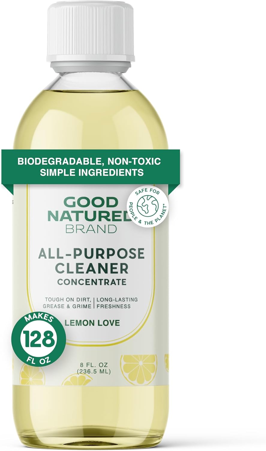 Good Natured Brand All-Purpose Cleaner Concentrate | Multi-Surface Cleaner | Natural Lemon Essential Oil | Multipurpose Cleaner Concentrate All Surfaces | Lemon Love | 8oz makes 128oz