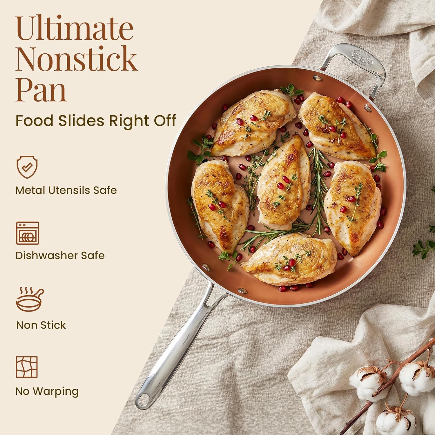 Gotham Steel Hammered Copper 14 Inch Non Stick Frying Pan with Lid, Nonstick Frying Pan with Ceramic Coating and Induction Plate for Even Heating, Oven / Dishwasher Safe, 100% Healthy & Non Toxic