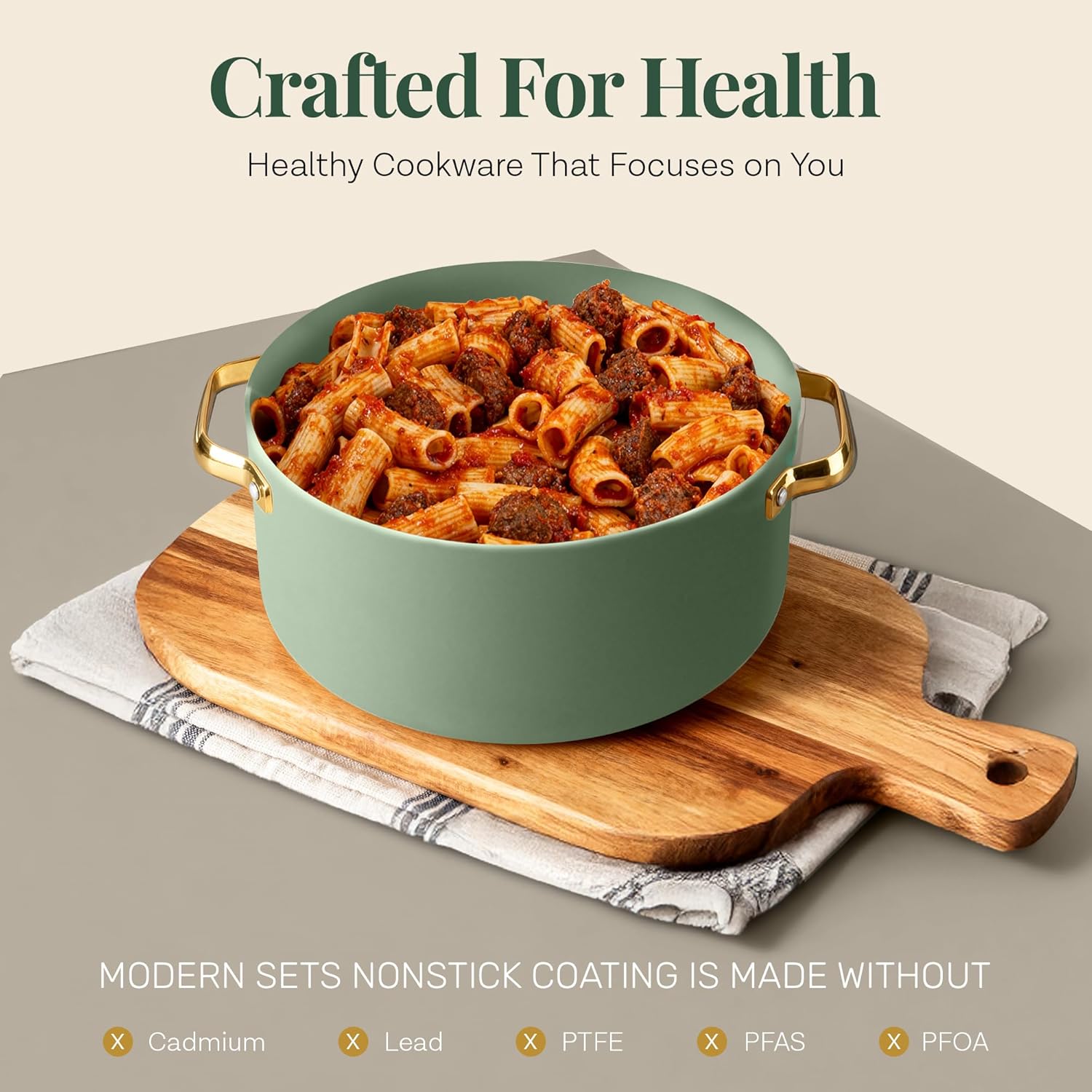 MADE WITH NON TOXIC MATERIALS: Made without PFOA, PFOS, PFTE, PFAS, lead, or cadmium, this non toxic set is crafted for safer meals. You can feel good using pots and pans that prioritize your family’s health.