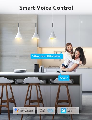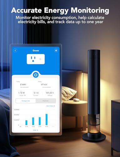Real-Time Energy Monitoring: Smart plugs track the real-time power, current, and voltage of your plug-in devices on Govee Home App. Supports reviewing data daily / weekly / monthly and up to 1 year to effectively save energy and reduce waste.