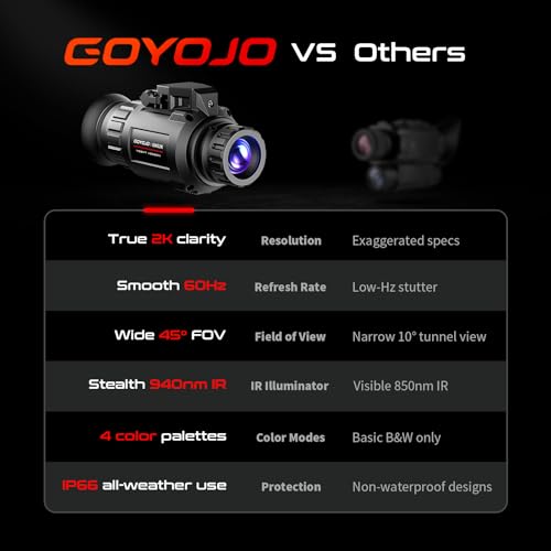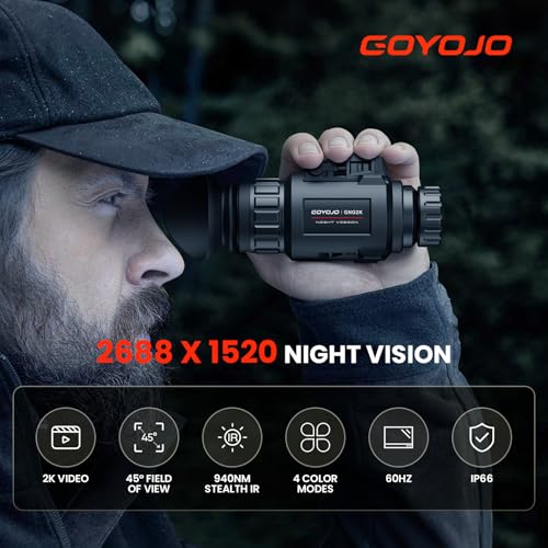 Ultra-Clear 2K Resolution – See What Others Can’t: GOYOJO GNG2K Night Vision Monocular delivers sharp 2688×1520 HD night vision with a smooth 60Hz refresh rate. Whether you’re securing your property, spotting coyotes at night, or navigating a pitch-dark trail, you’ll enjoy crystal-clear visuals without lag or blur — even in total darkness.