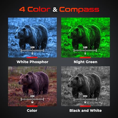Four Color Modes for Every Situation: Easily switch between Night Green, Black & White, White Phosphor, or Color (with a reddish-purple tint) depending on your environment. This night vision device is great for wildlife observation, camping, or patrolling private land — adapt to forest, field, or urban night scenes in seconds.
