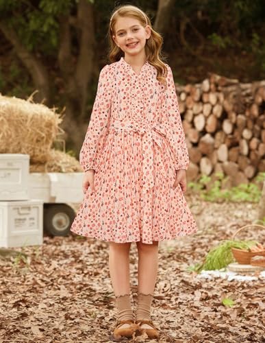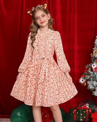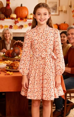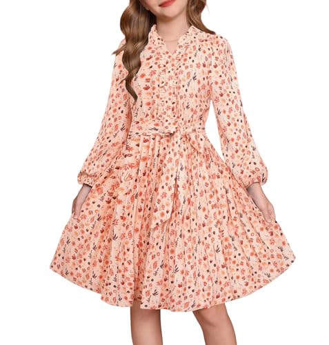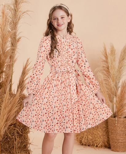 GRACE KARIN Fall Dress for Girls Long Sleeve Holiday Floral Teens Thanksgiving Party Formal Pleated Dresses Size 10