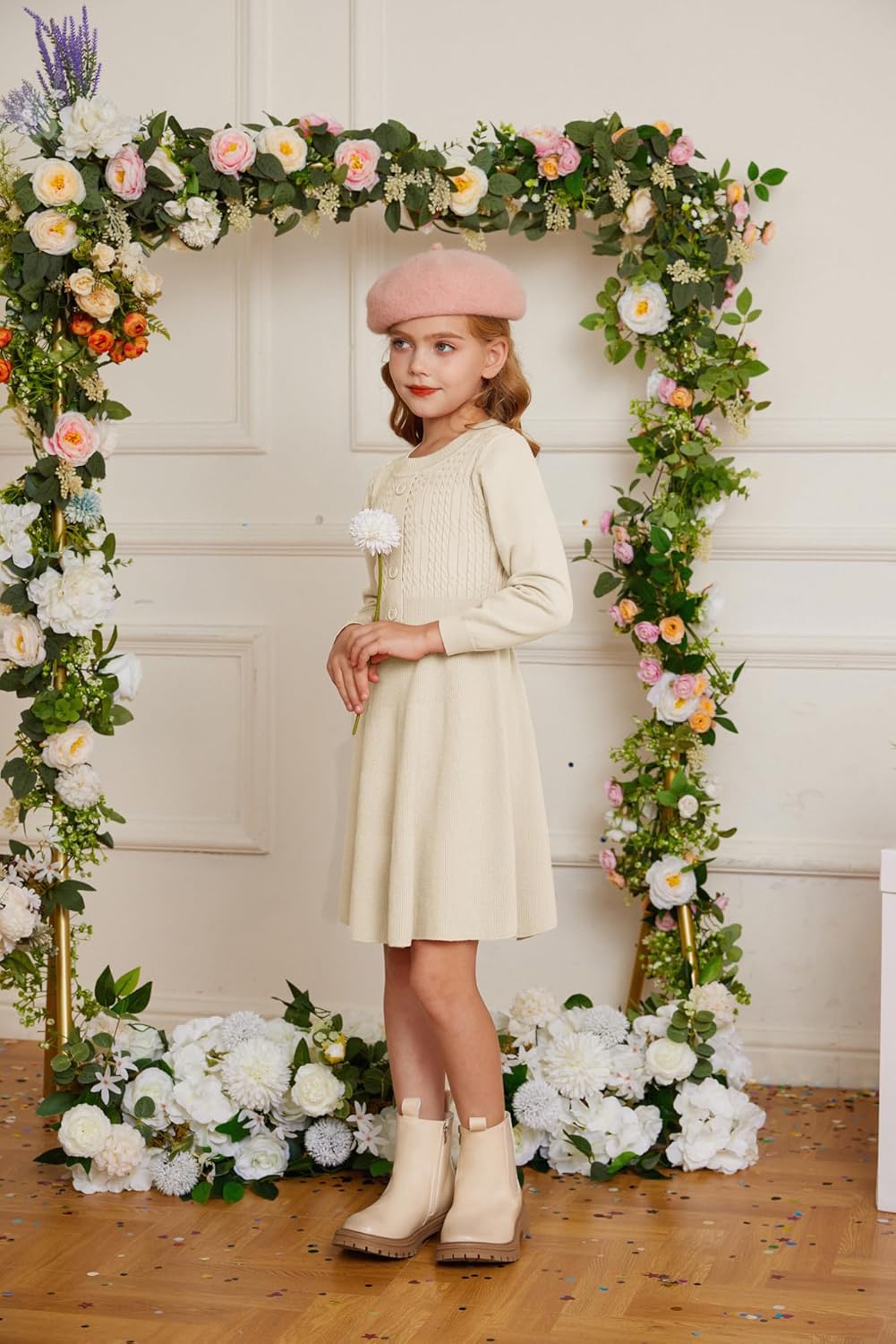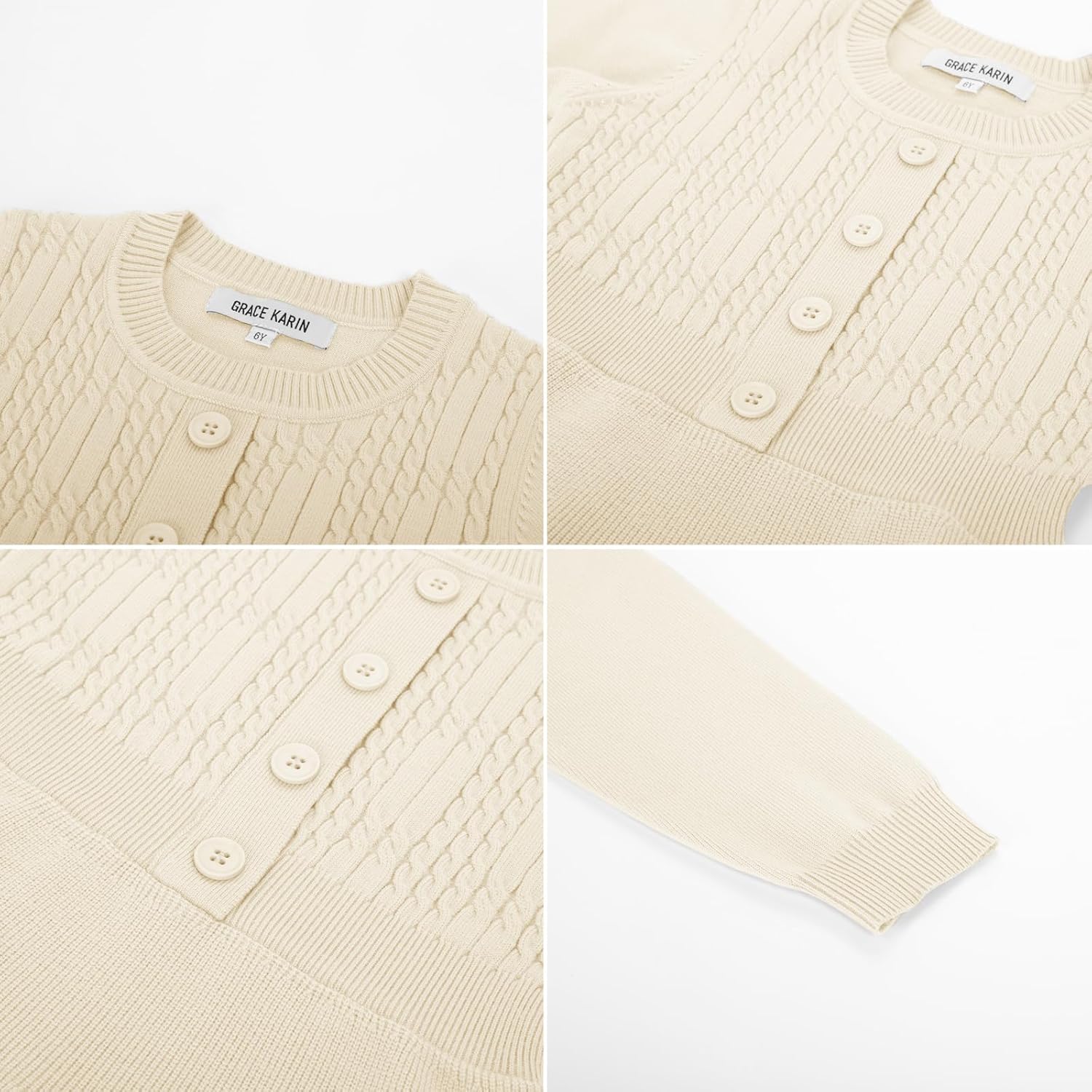 GRACE KARIN Girls New Trendy Unique Cable Knit Sweater A-line Dress