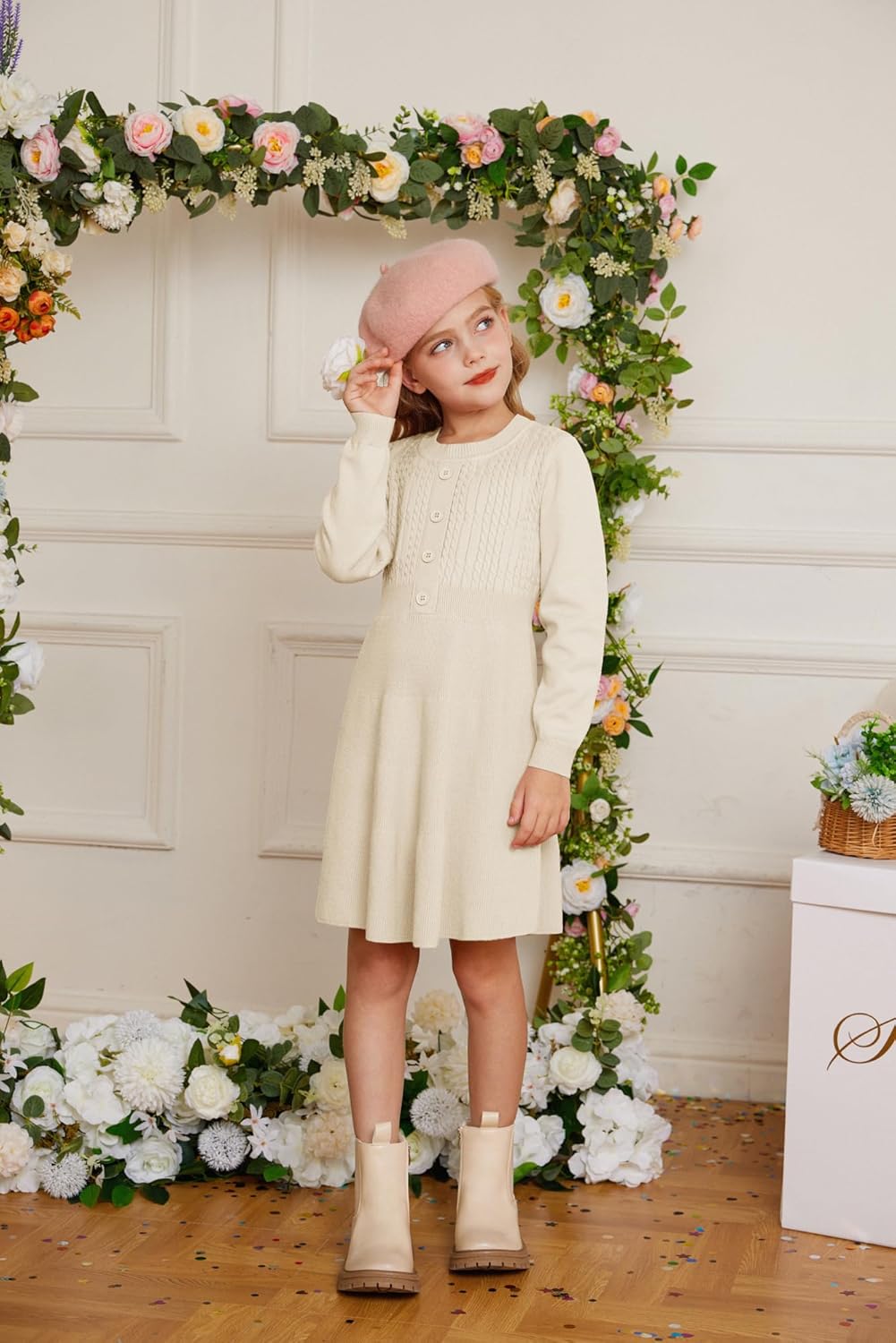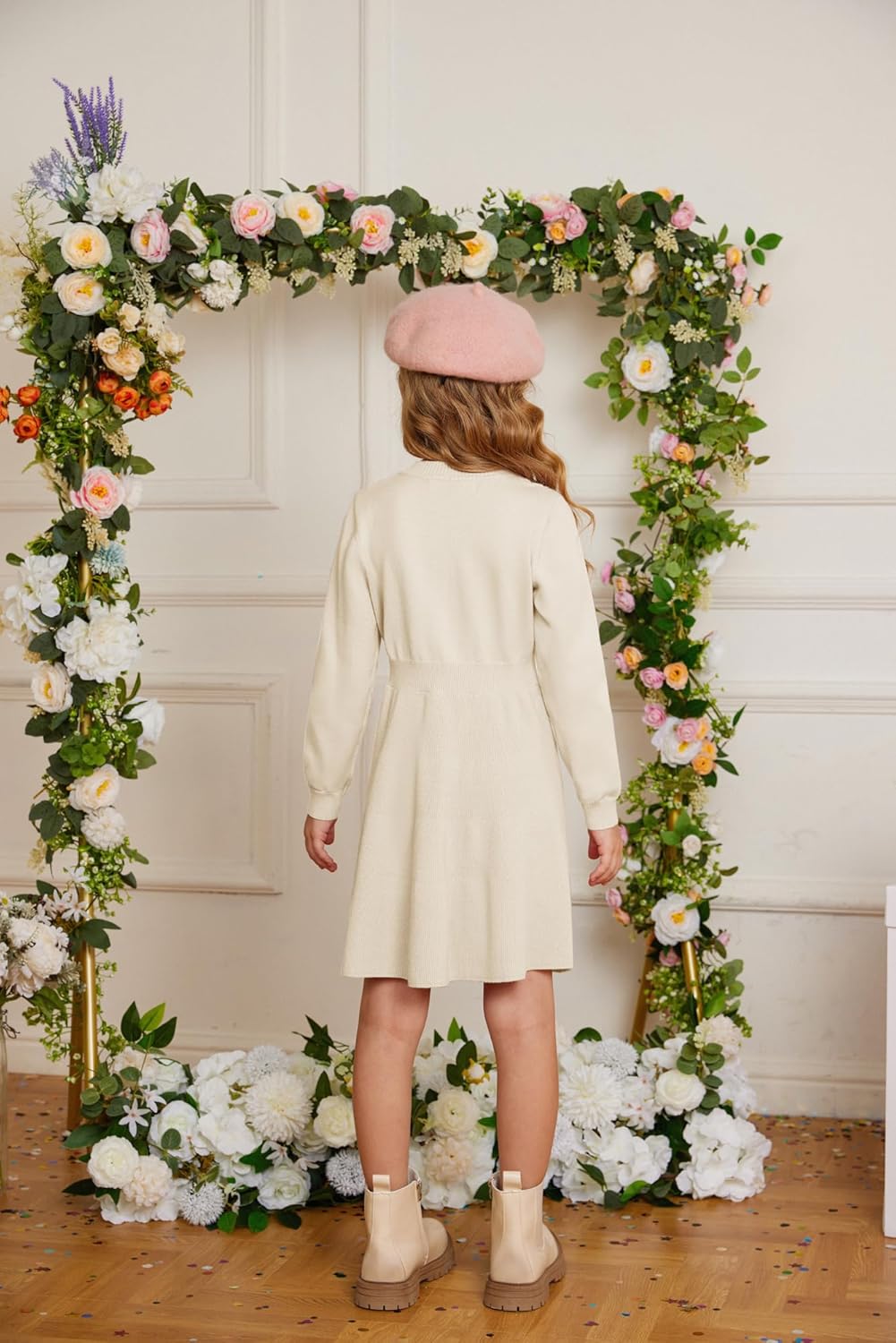 GRACE KARIN Girl Dress Long Sleeve Sweater Ruffle Button Front Knit Casual Fall Winter Dresses for Girls 5-12