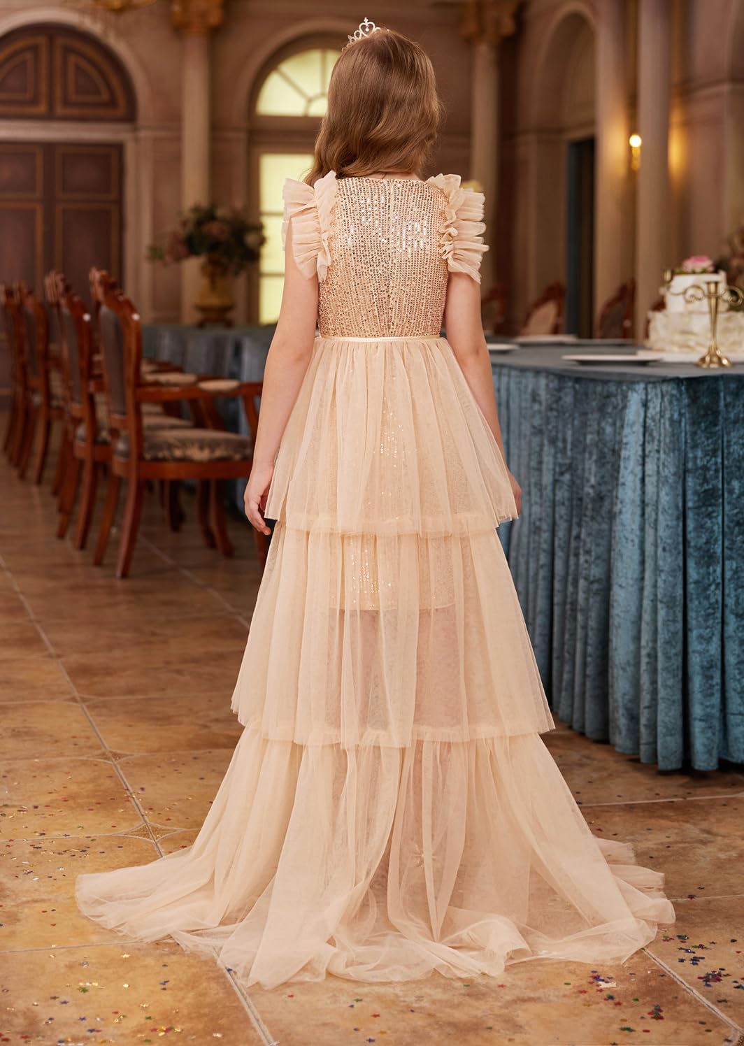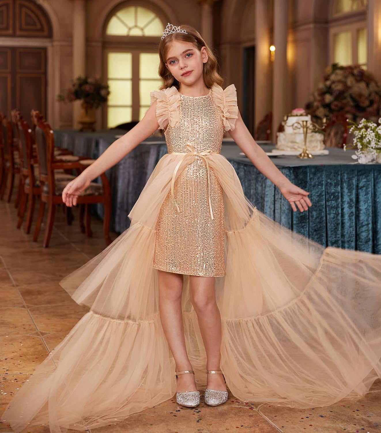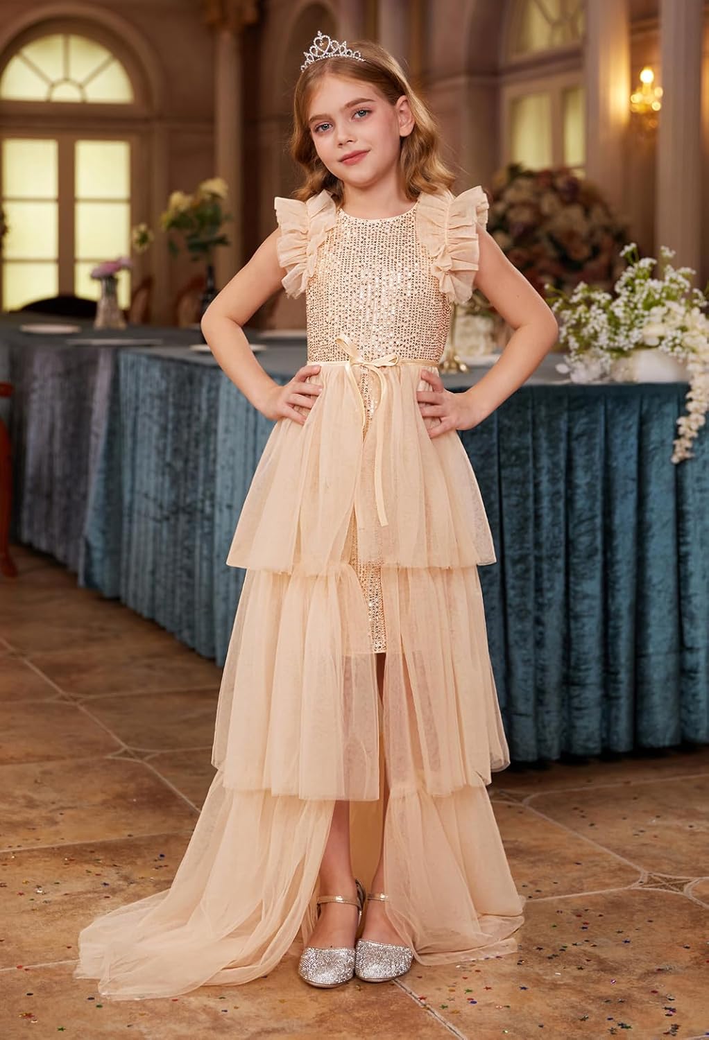 GRACE KARIN Girls Sequin Dress Formal Pageant Sparkle Party Ruffle Prom Maxi Dress Size 5-14Y